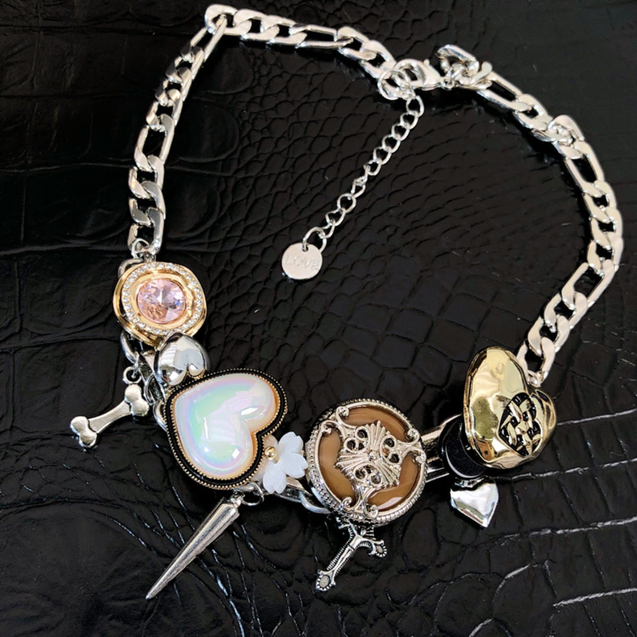 マルチチャームネックレス・メタルチェーン・オーバーサイズネックレスR0046