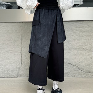 ラップスカート風 ワイドレッグレイヤードパンツR1162