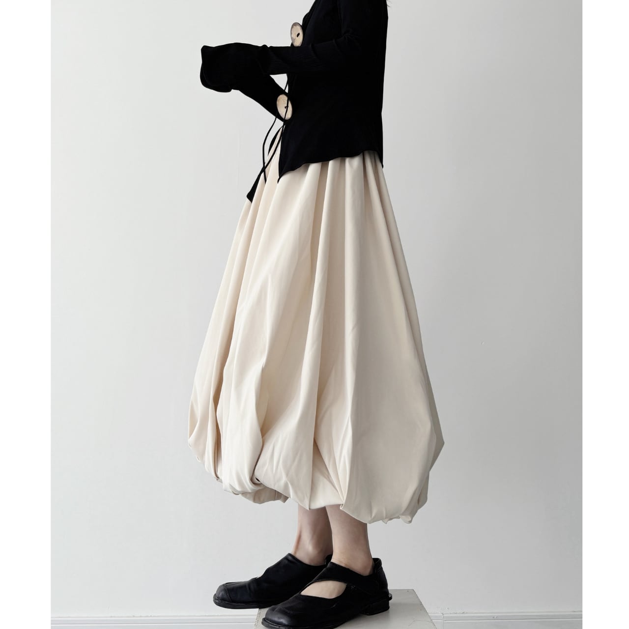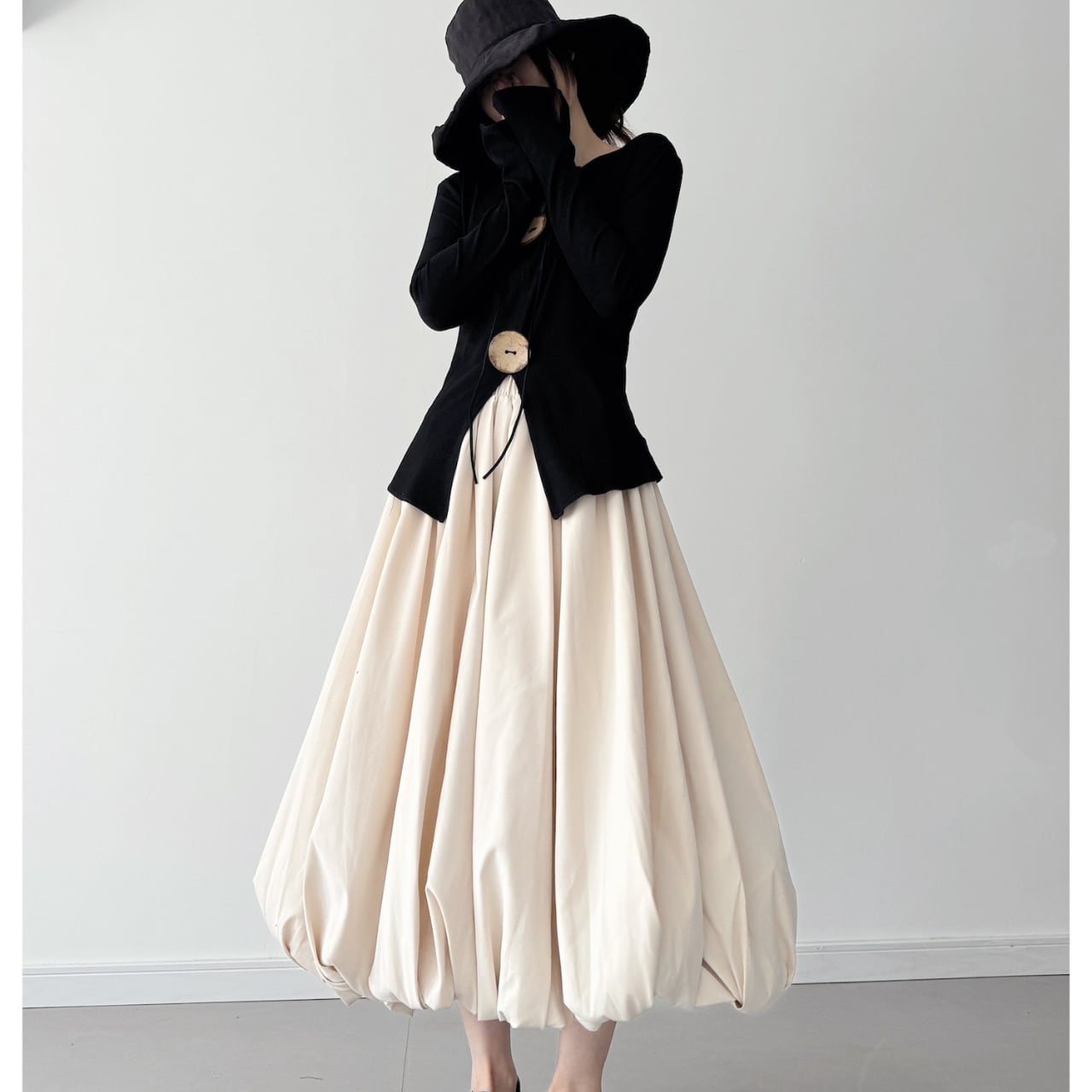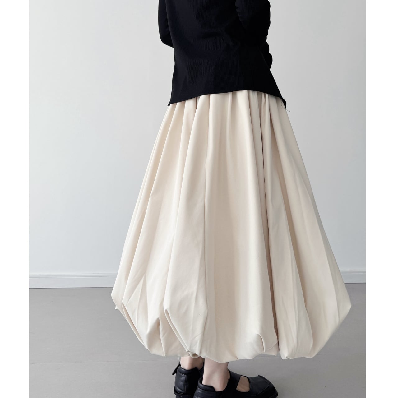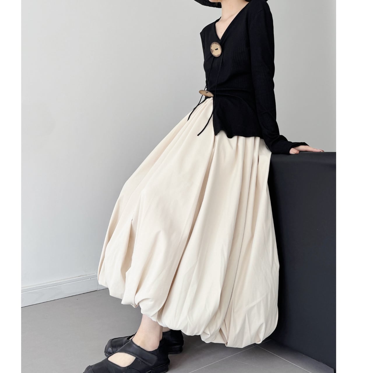体のラインを拾わない、ストレスフリーな着心地のロングスカートです。