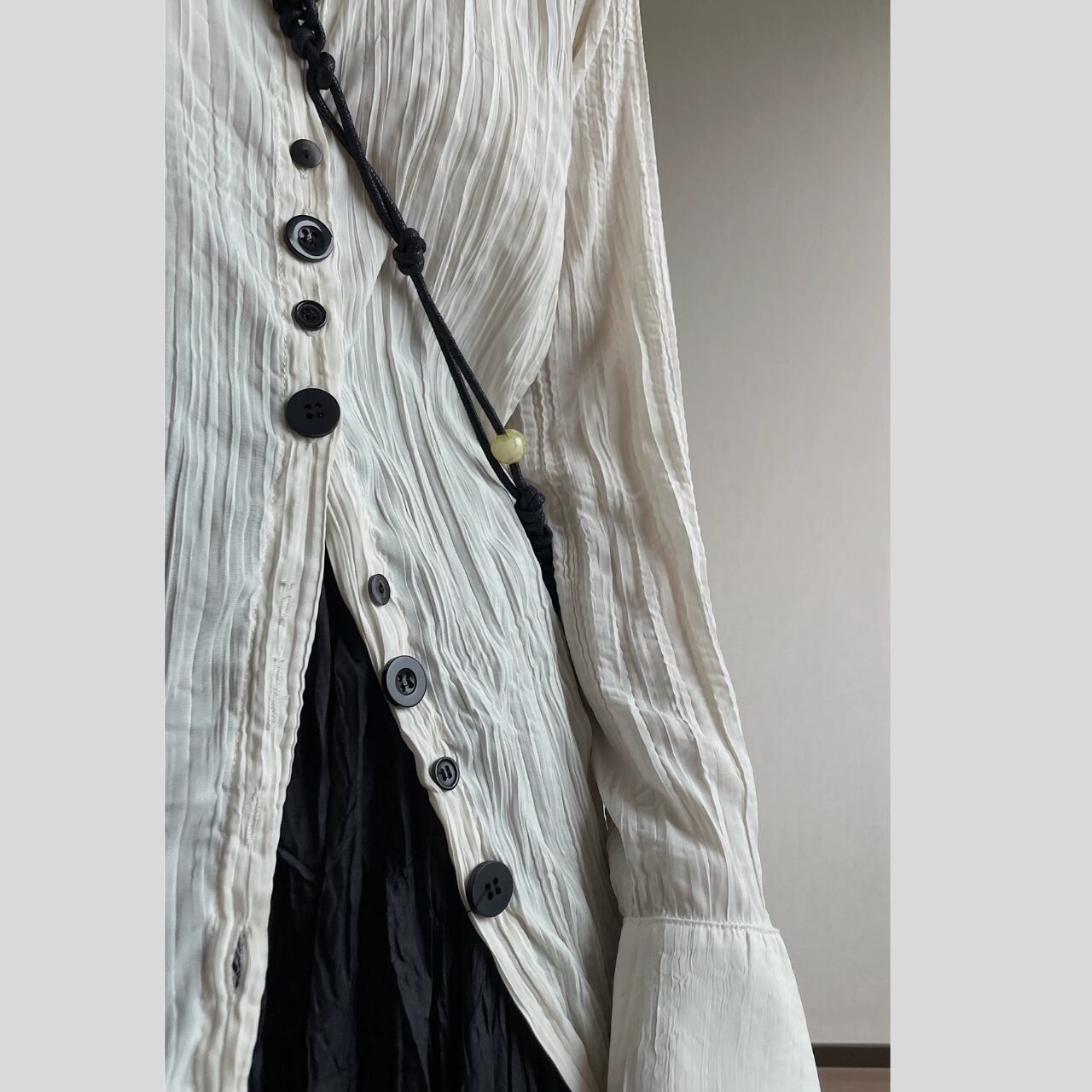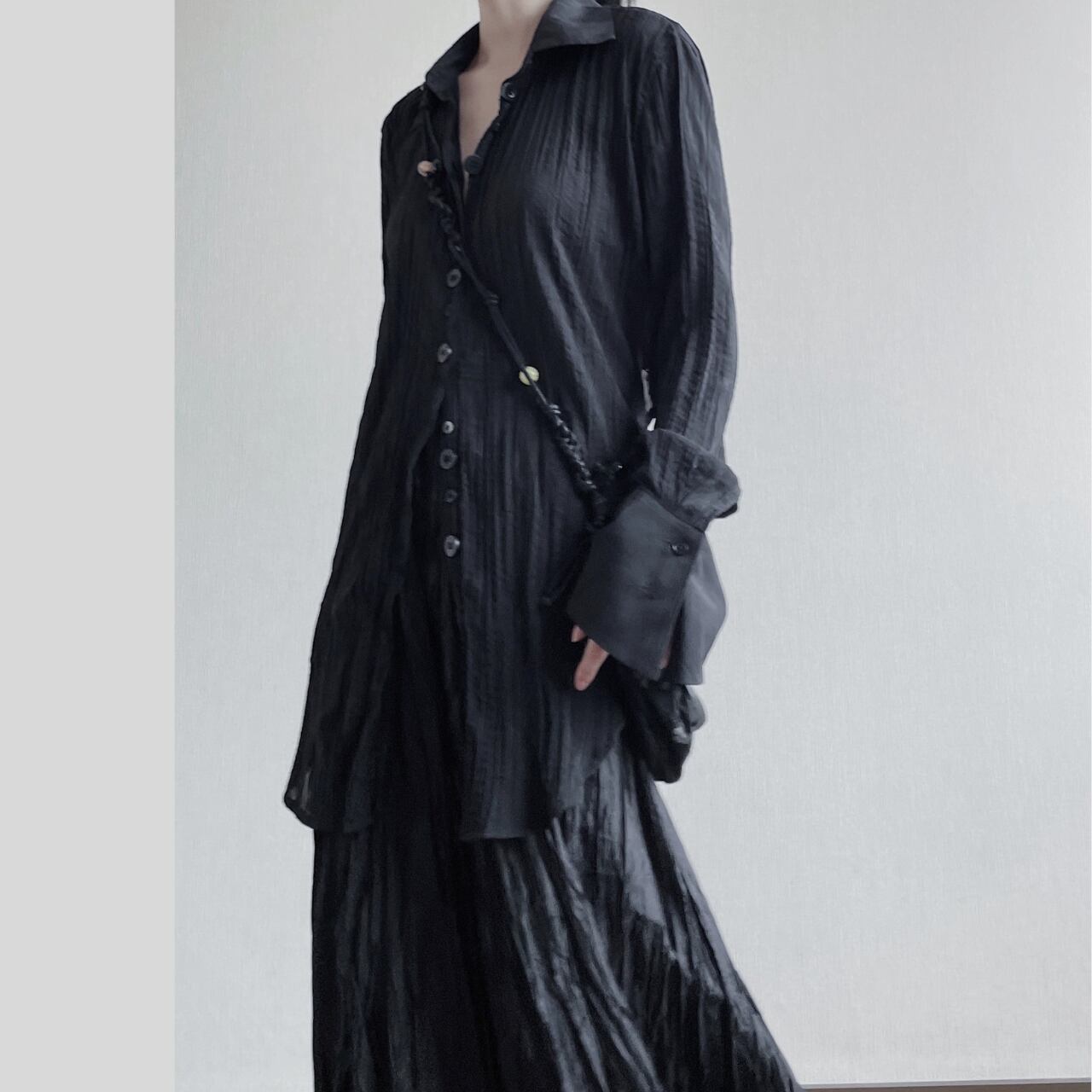 クリンクル加工 ロングスリーブ 比翼仕立て シャツR0064