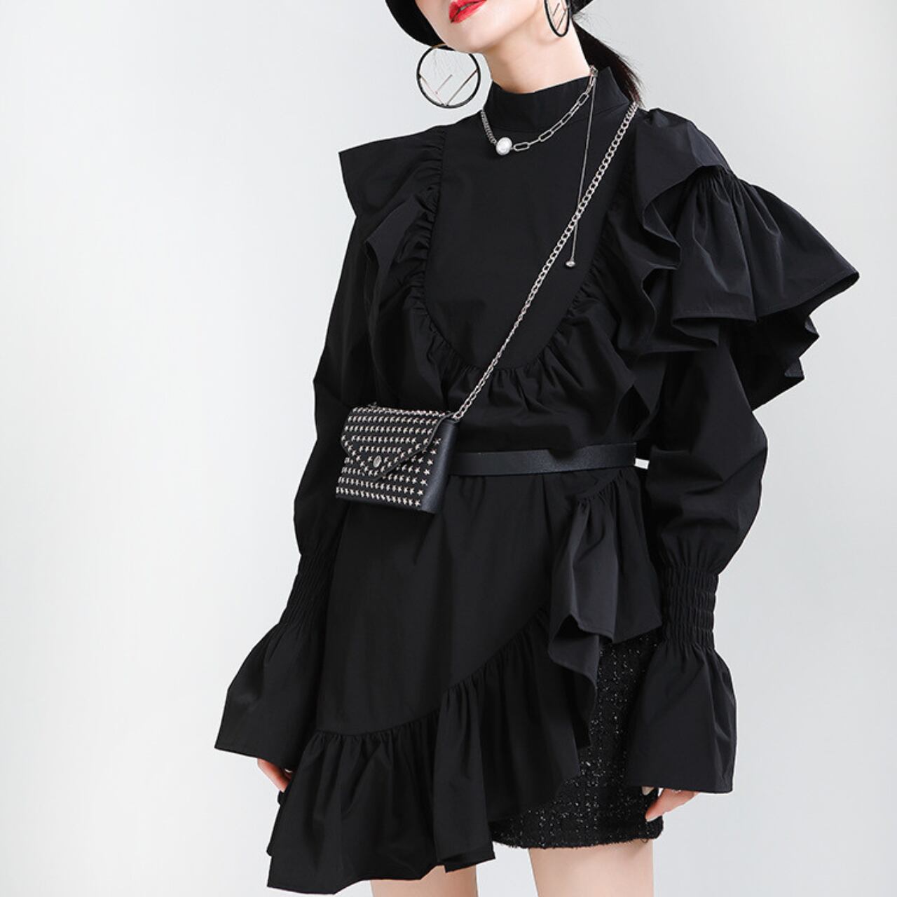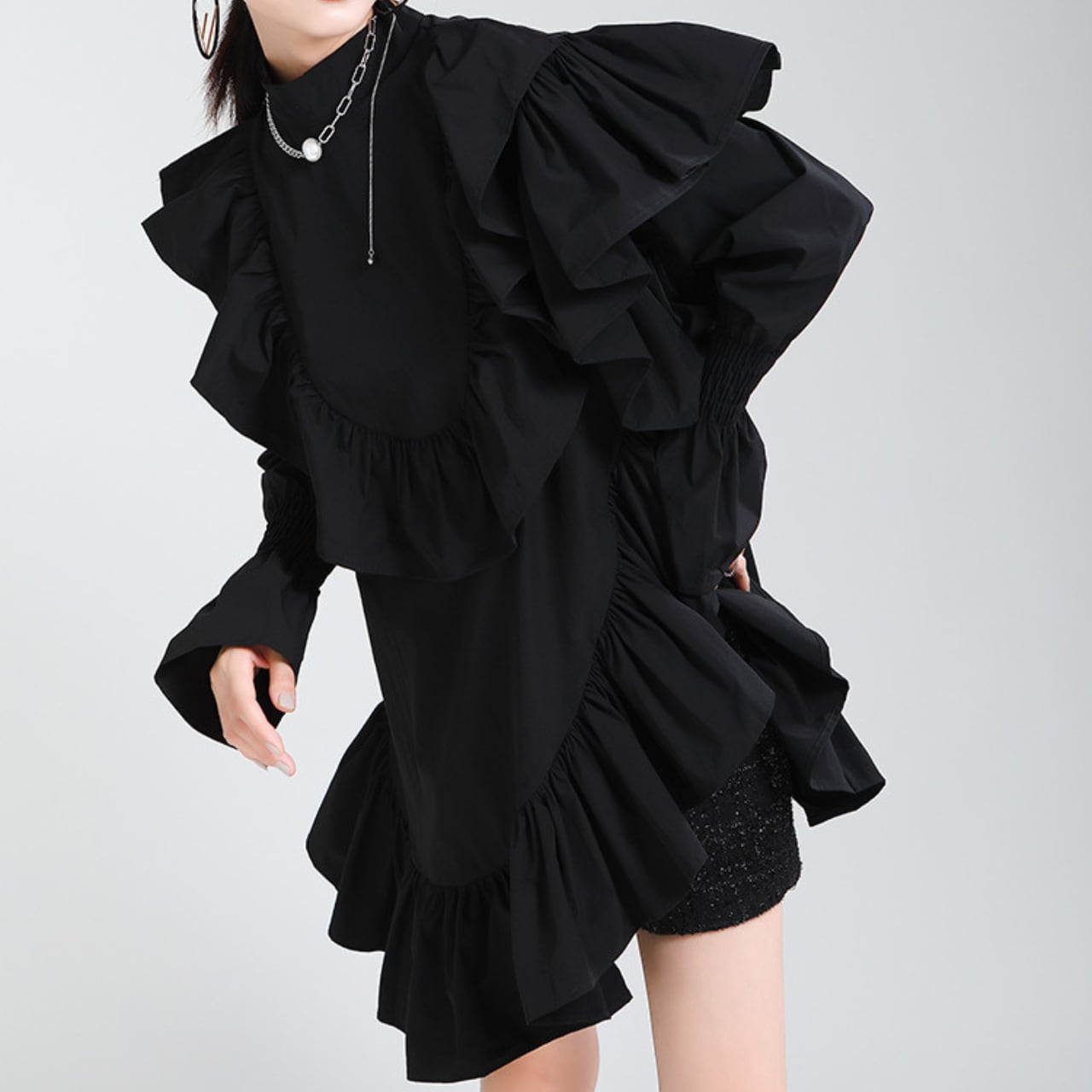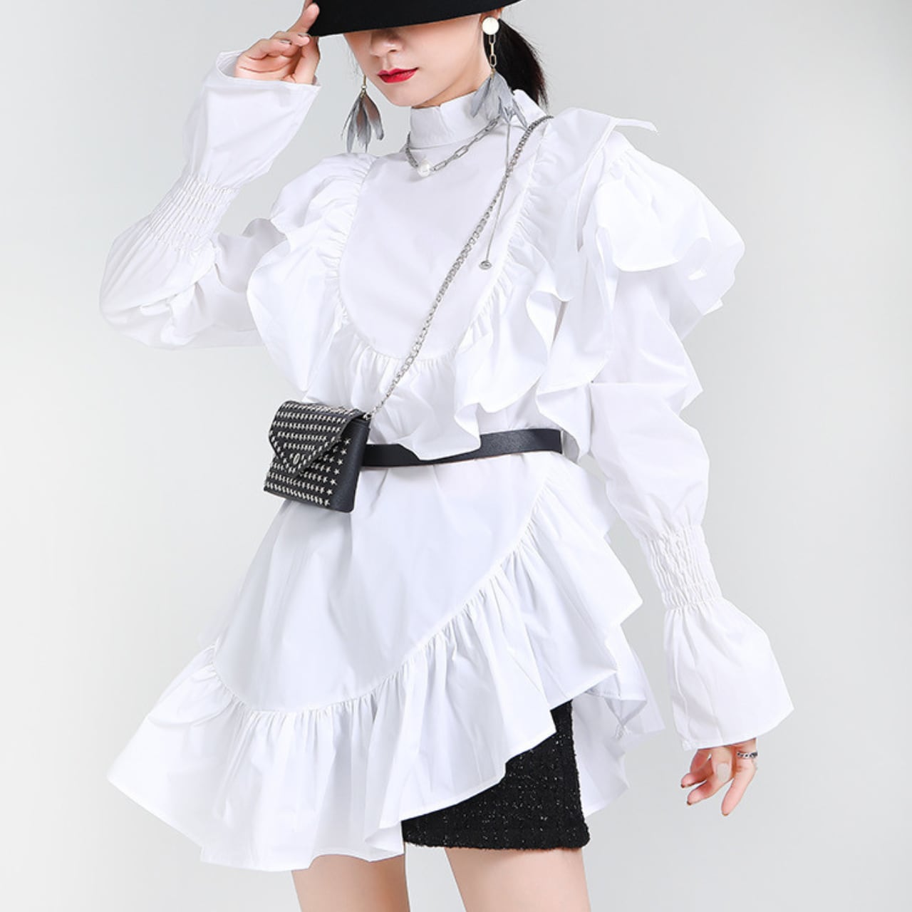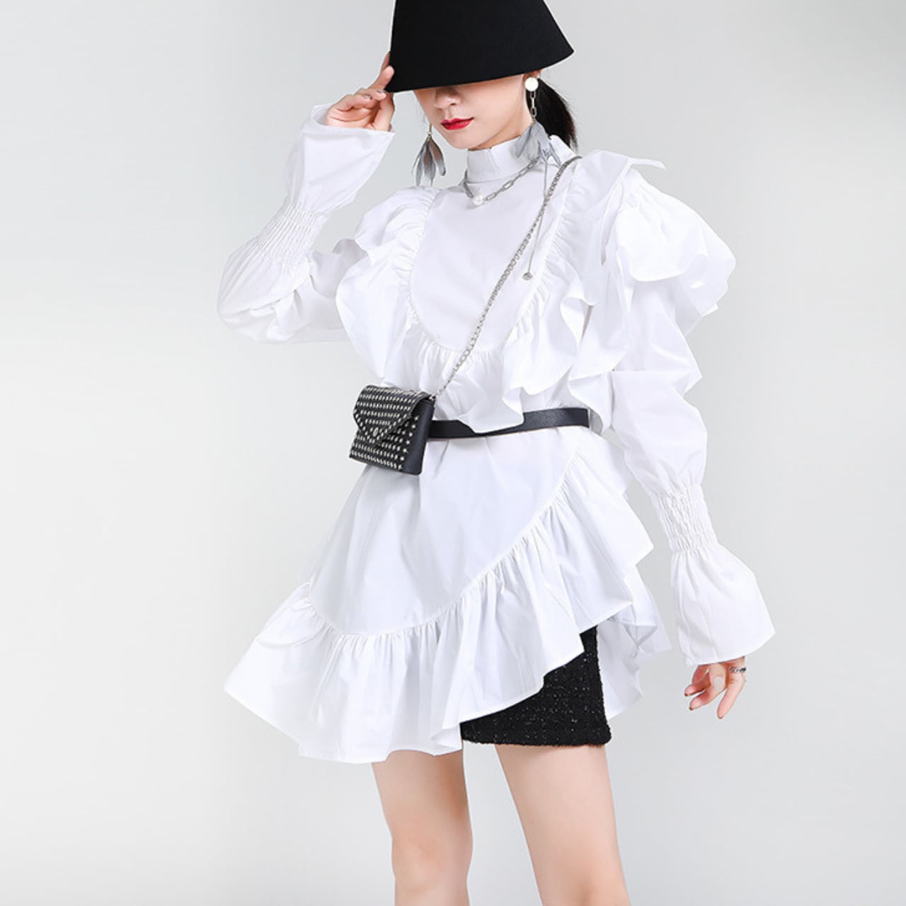 ティアード ロングスリーブアシンメトリーヘムシャツ R1073