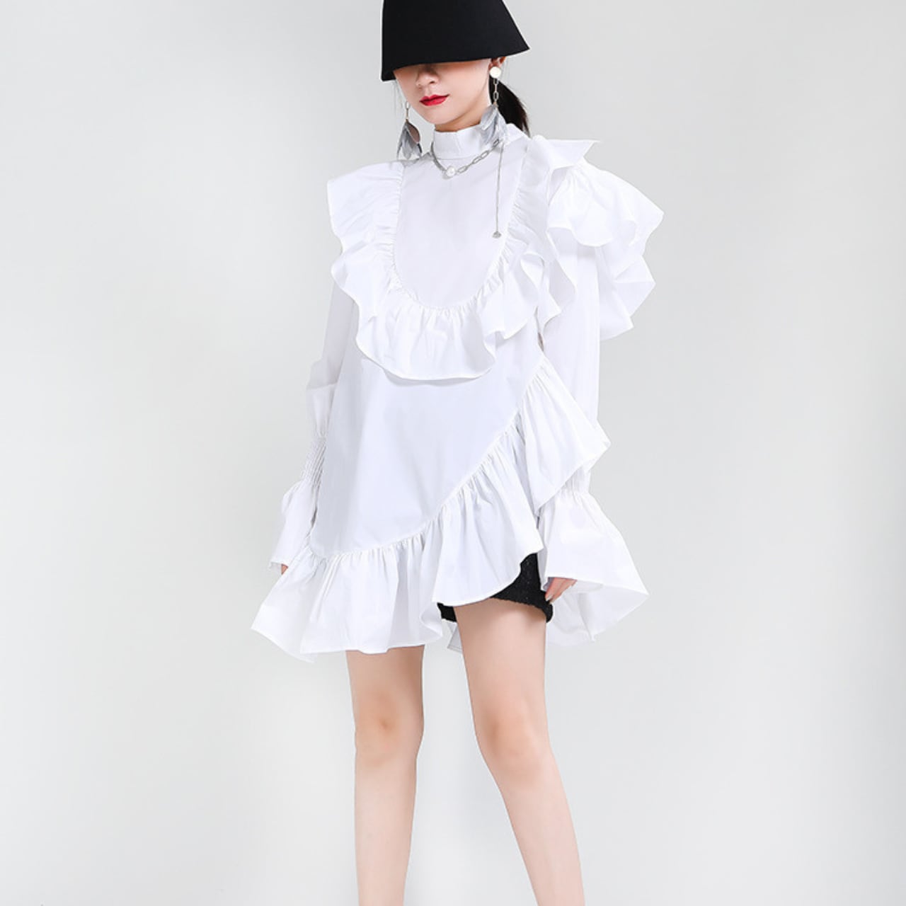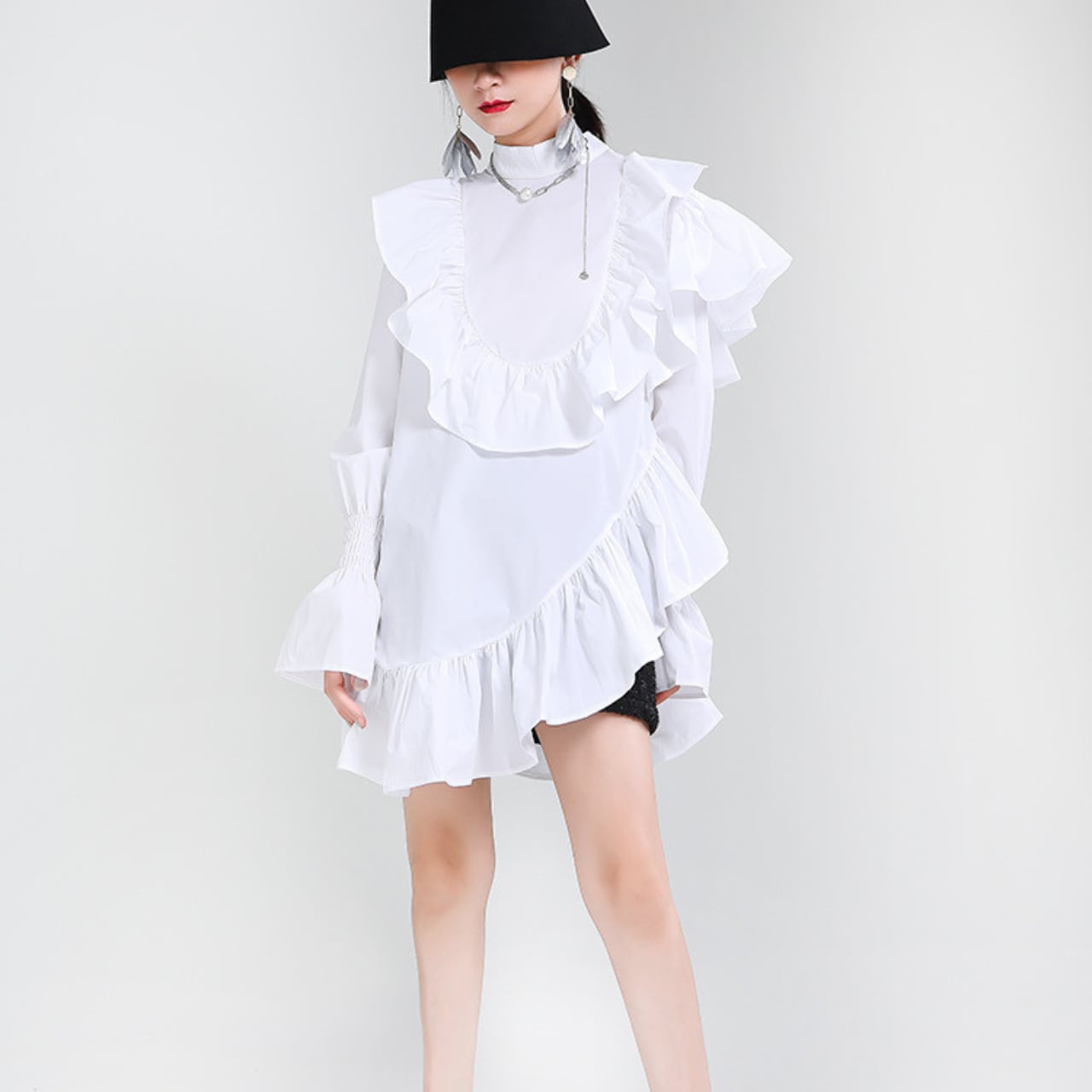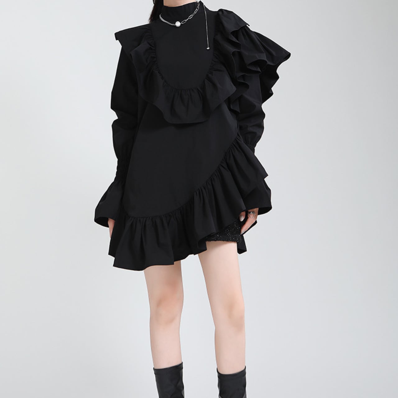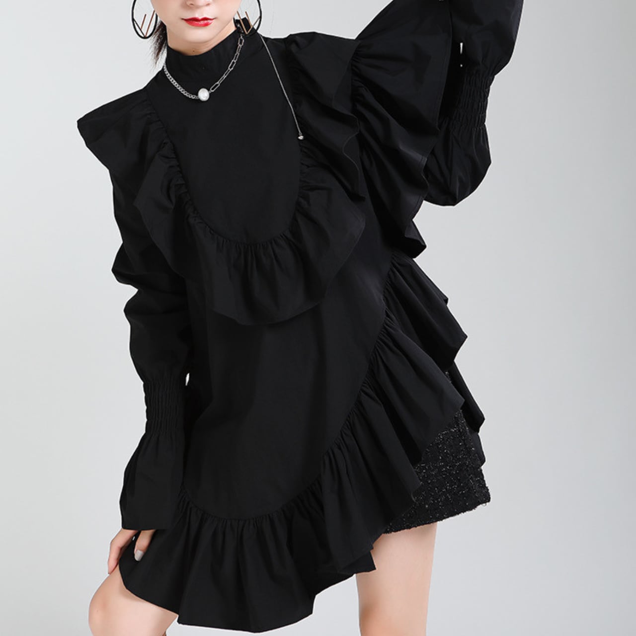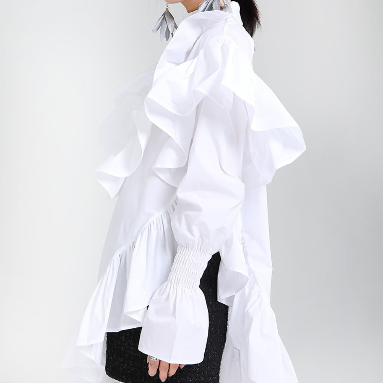 ティアード ロングスリーブアシンメトリーヘムシャツ R1073