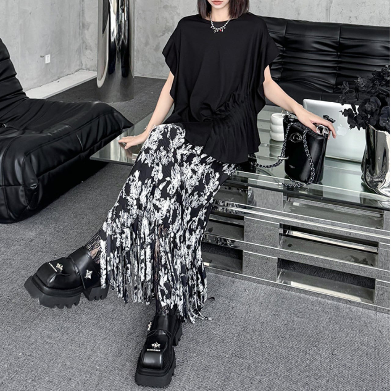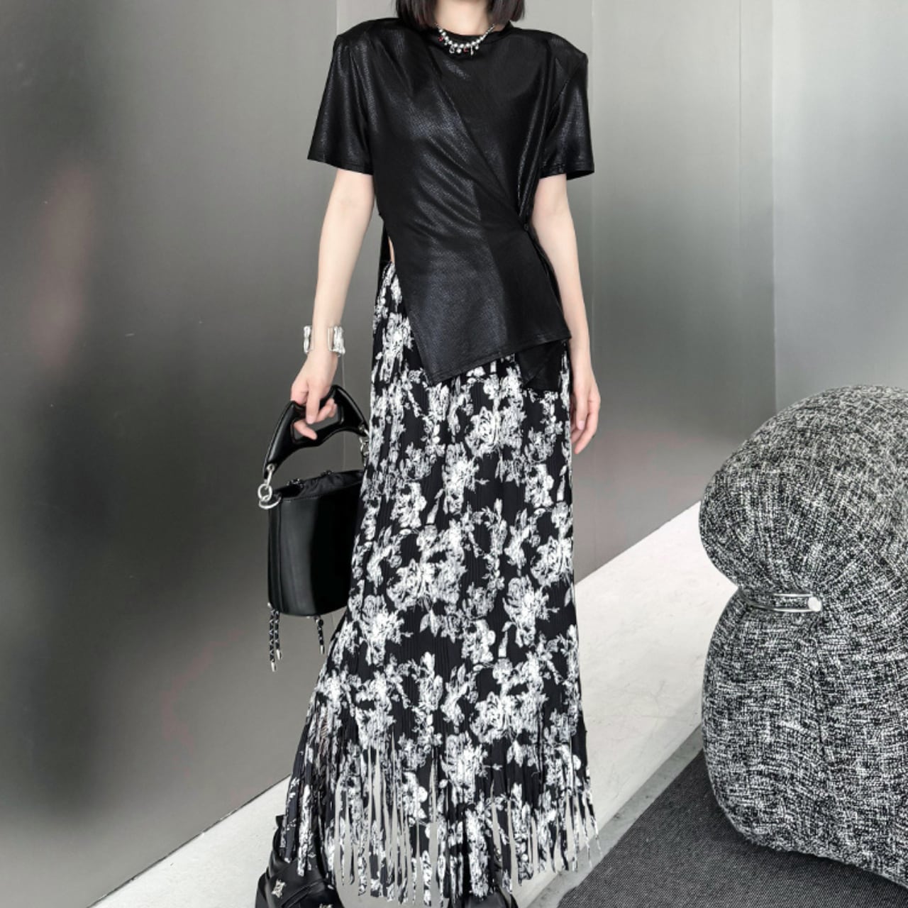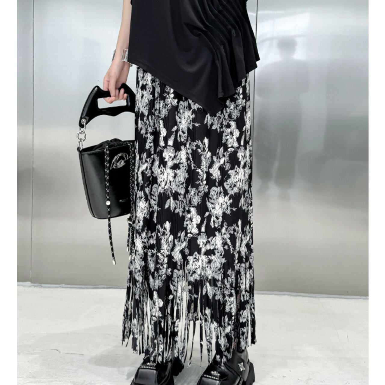 フリンジデザインが歩くたびに揺れ動き、女性らしい軽やかさを演出。シンプルながらも洗練されたデザインで、様々なトップスと合わせやすく、デイリーユースにもぴったりです。