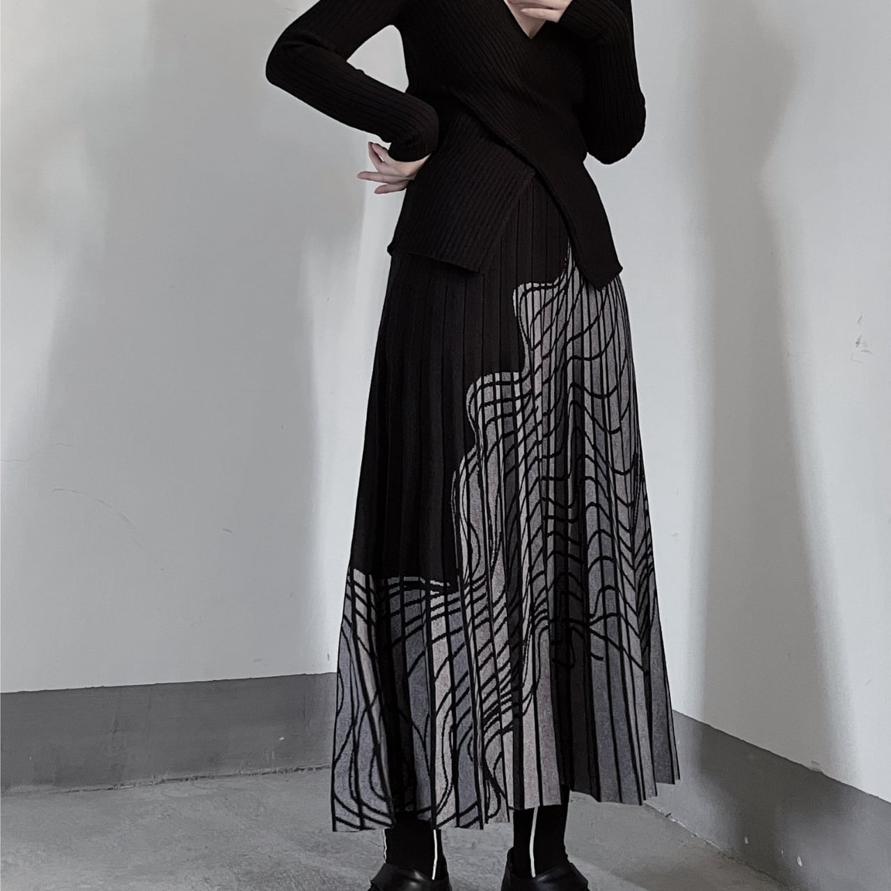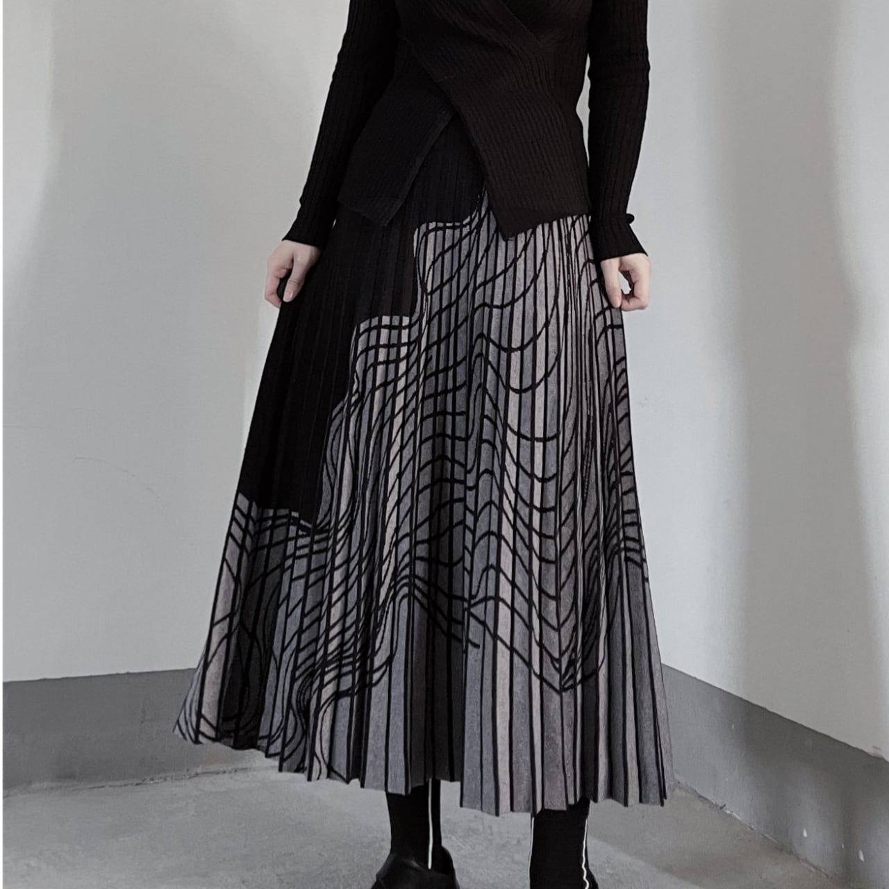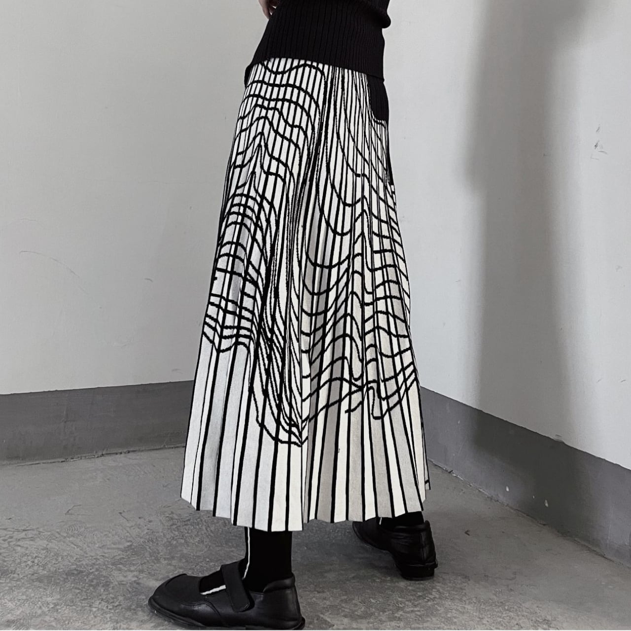 個性的なライン柄が目を惹く、マキシ丈スカート。上品な印象を与えるシルエットと、着心地の良い素材感で、リラックスしたスタイルを楽しめます。カジュアルなトップスと合わせればこなれた普段着に、きれいめなブラウスと合わせれば洗練された装いに。着回し力の高さが魅力です。