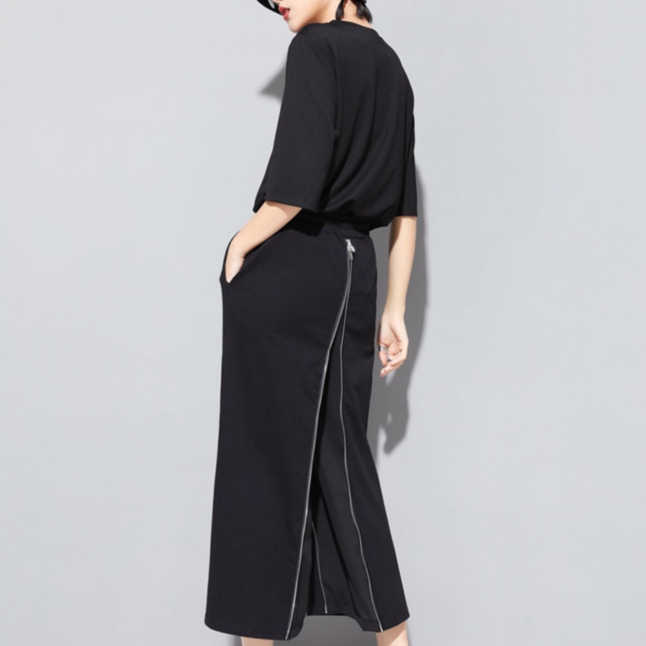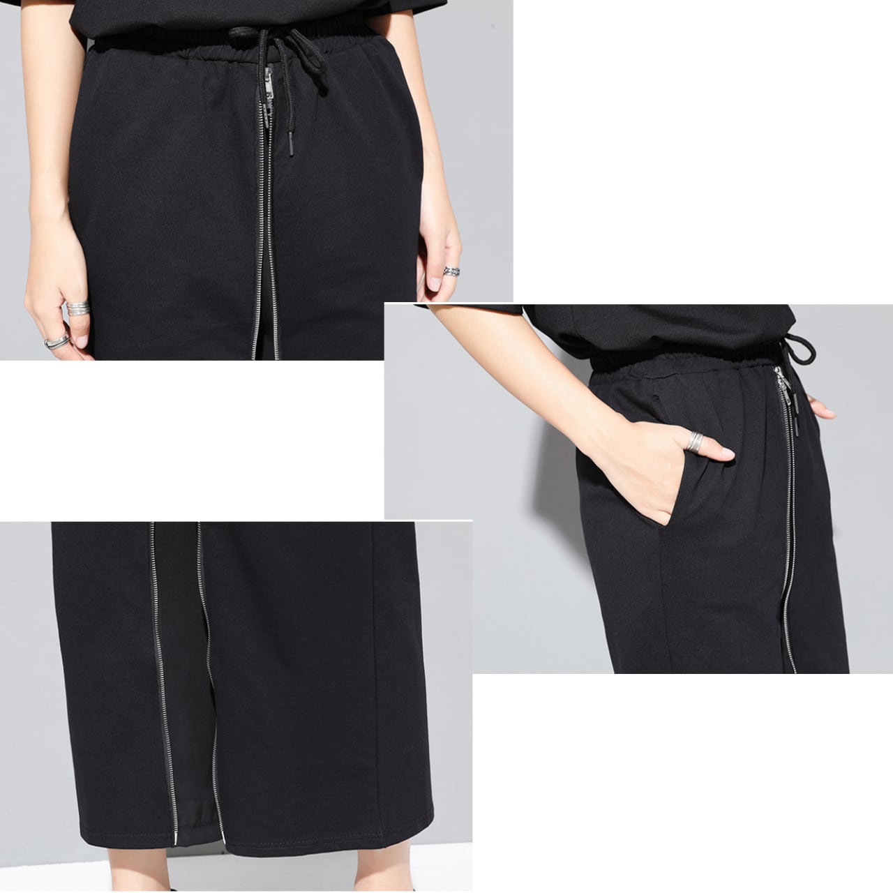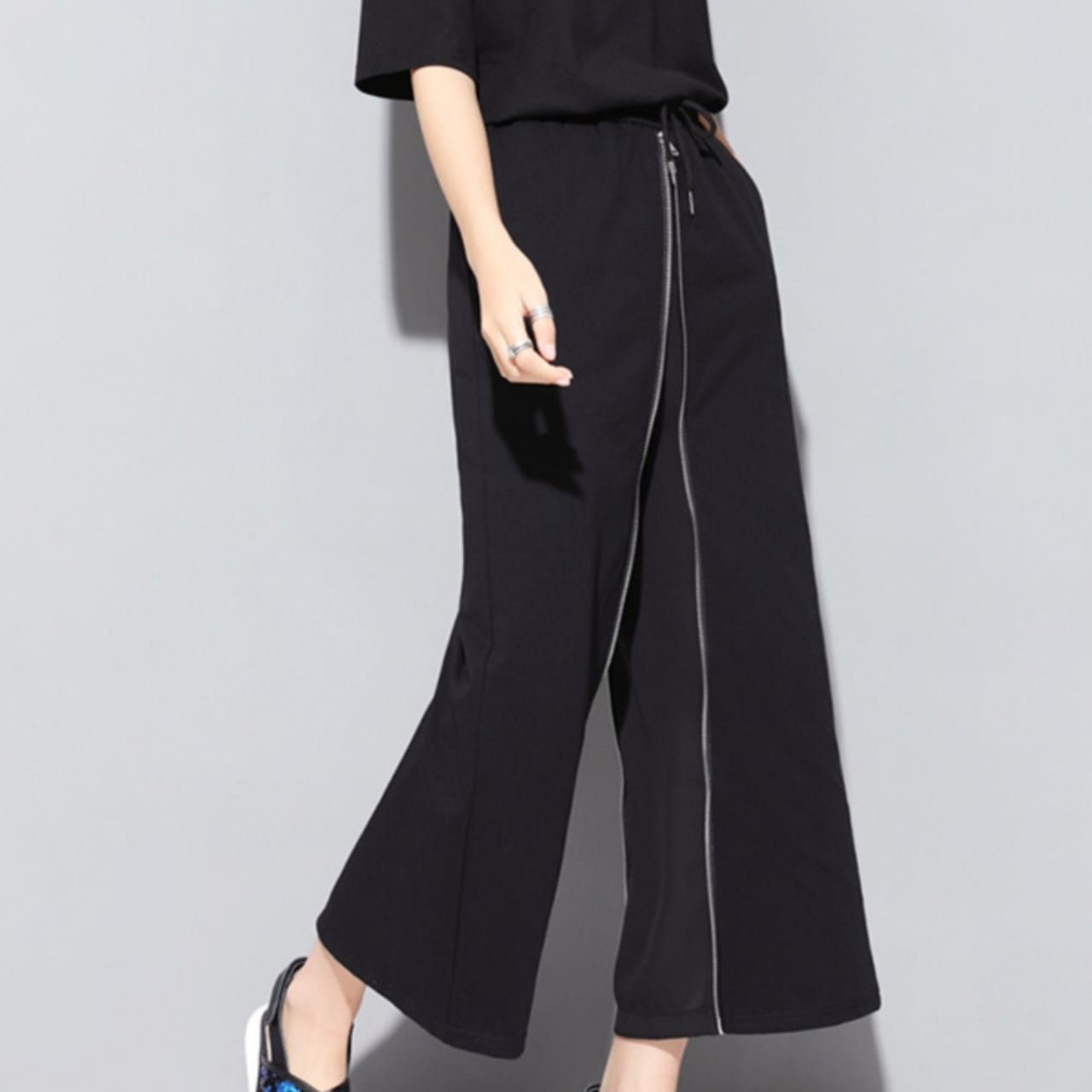 スカート風に変形できる前ジップ付きクロップドパンツR1185