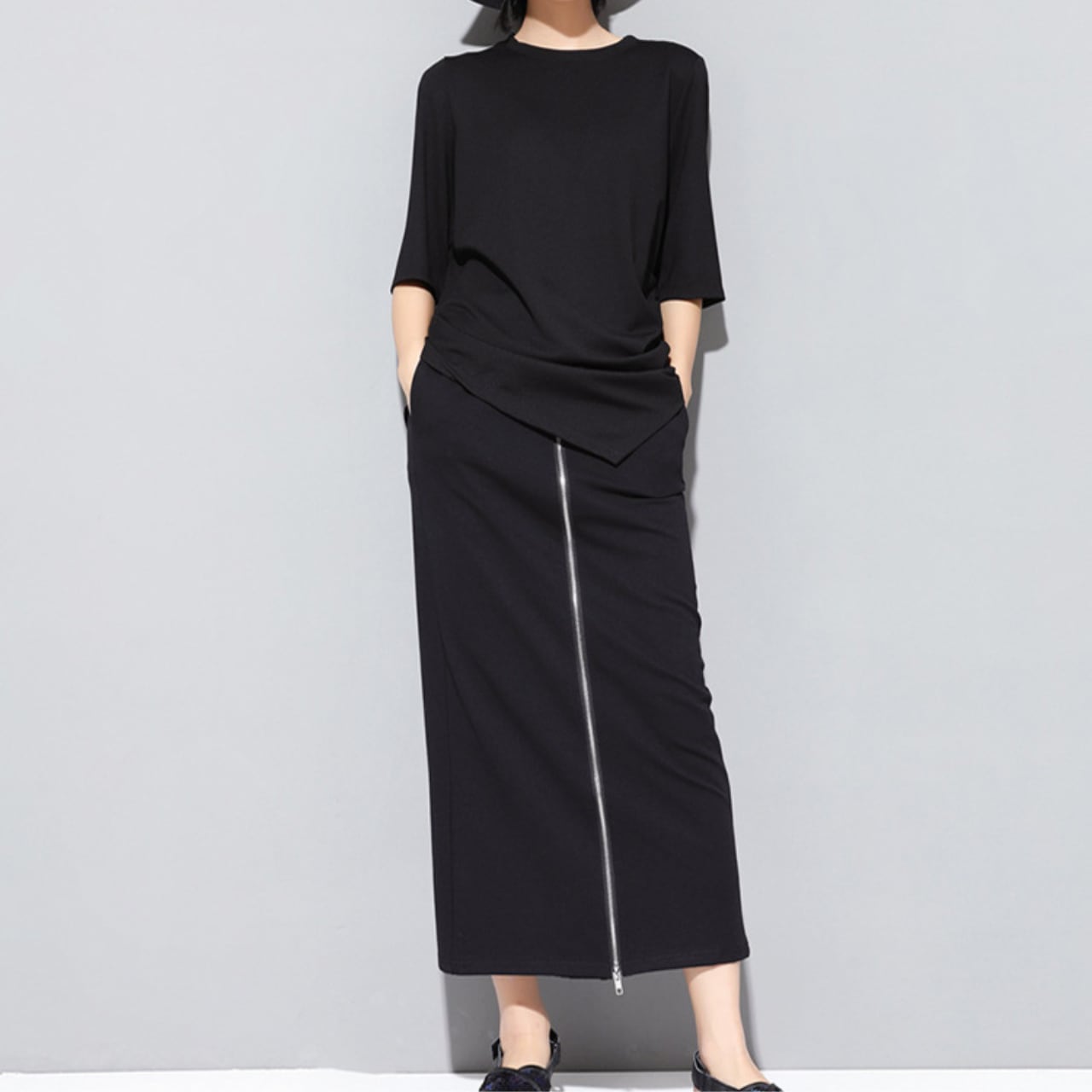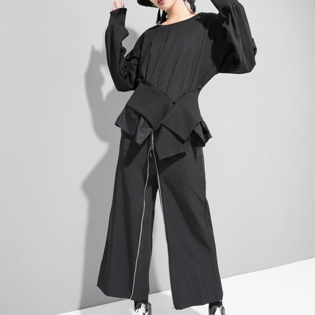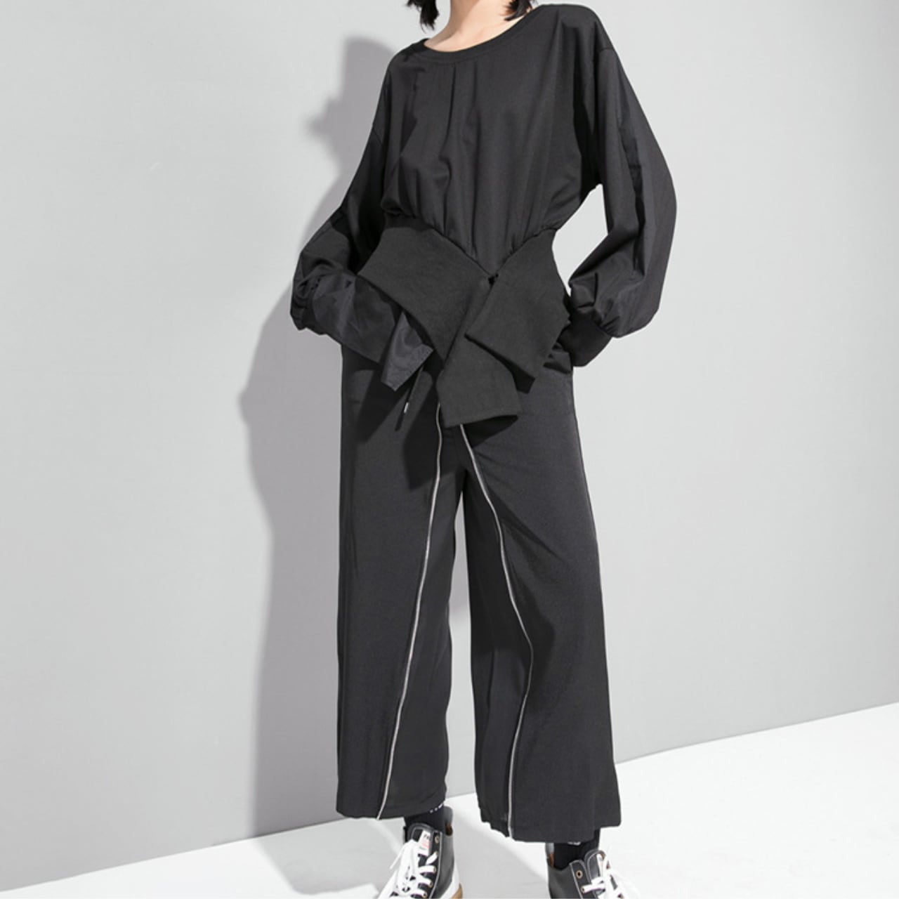 スカート風に変形できる前ジップ付きクロップドパンツR1185