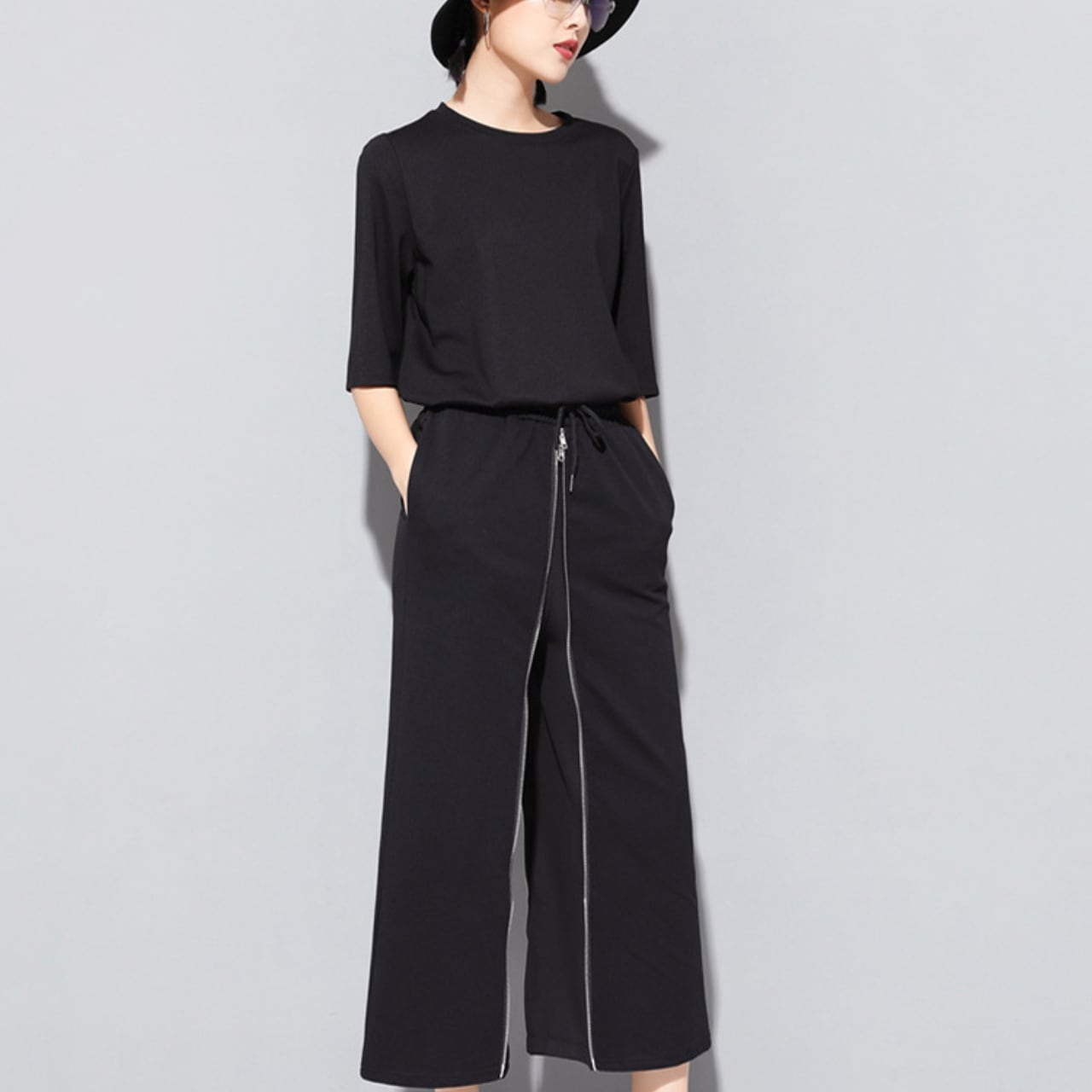 ウエストゴムで快適な履き心地、フロントジッパーがデザインのポイントになったワイドレッグクロップドパンツ。リラックス感のあるシルエットは、カジュアルなスタイルにも、きれいめなスタイルにも合わせやすく、幅広いコーディネートを楽しめます。