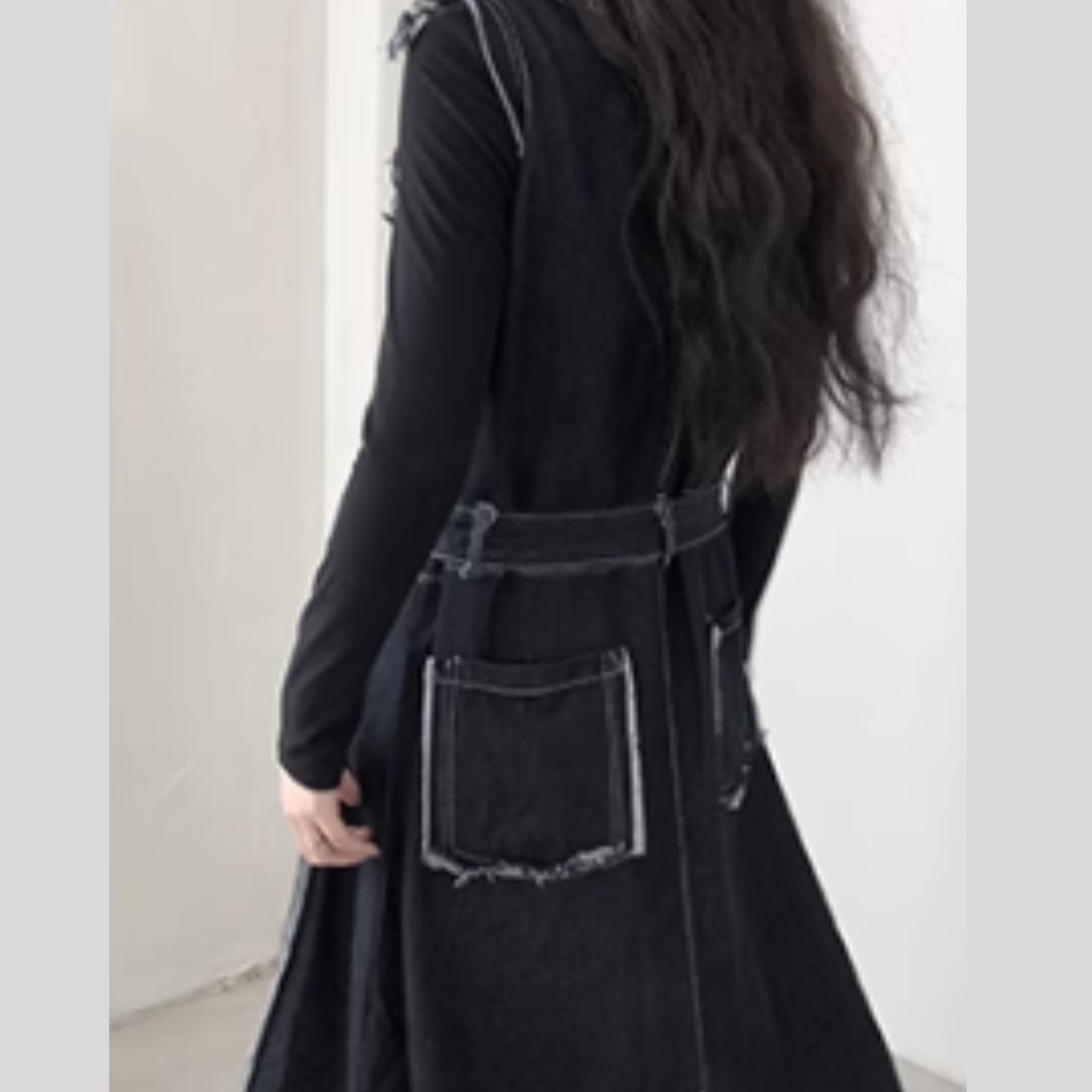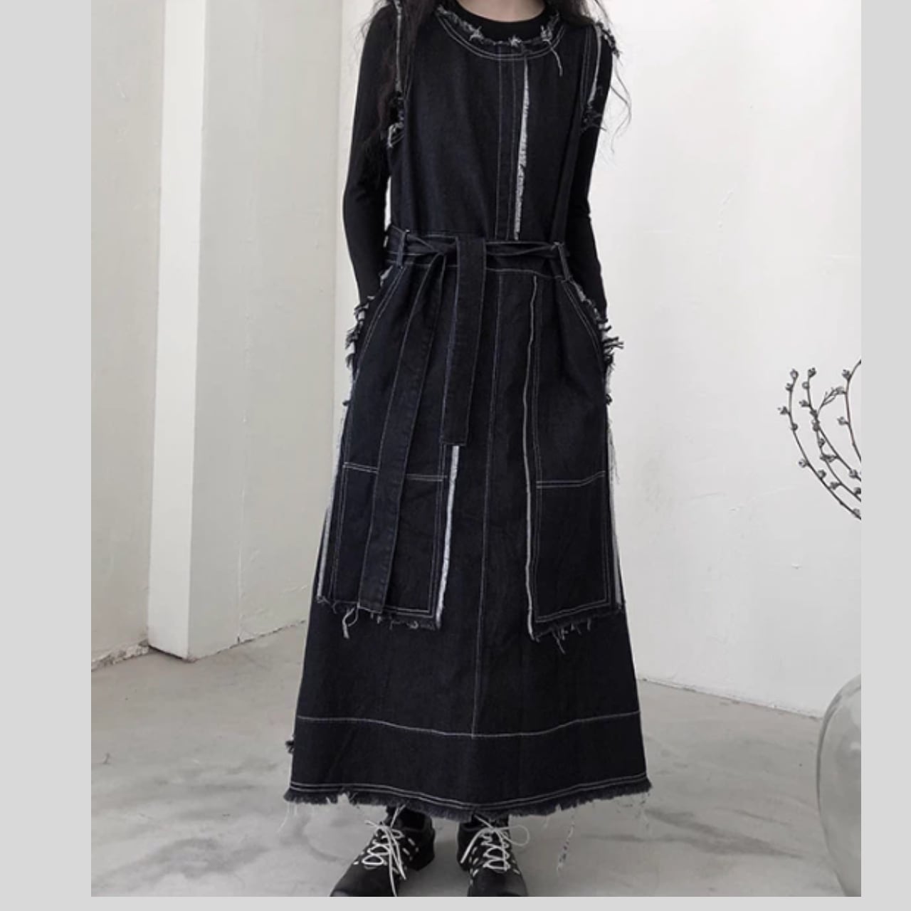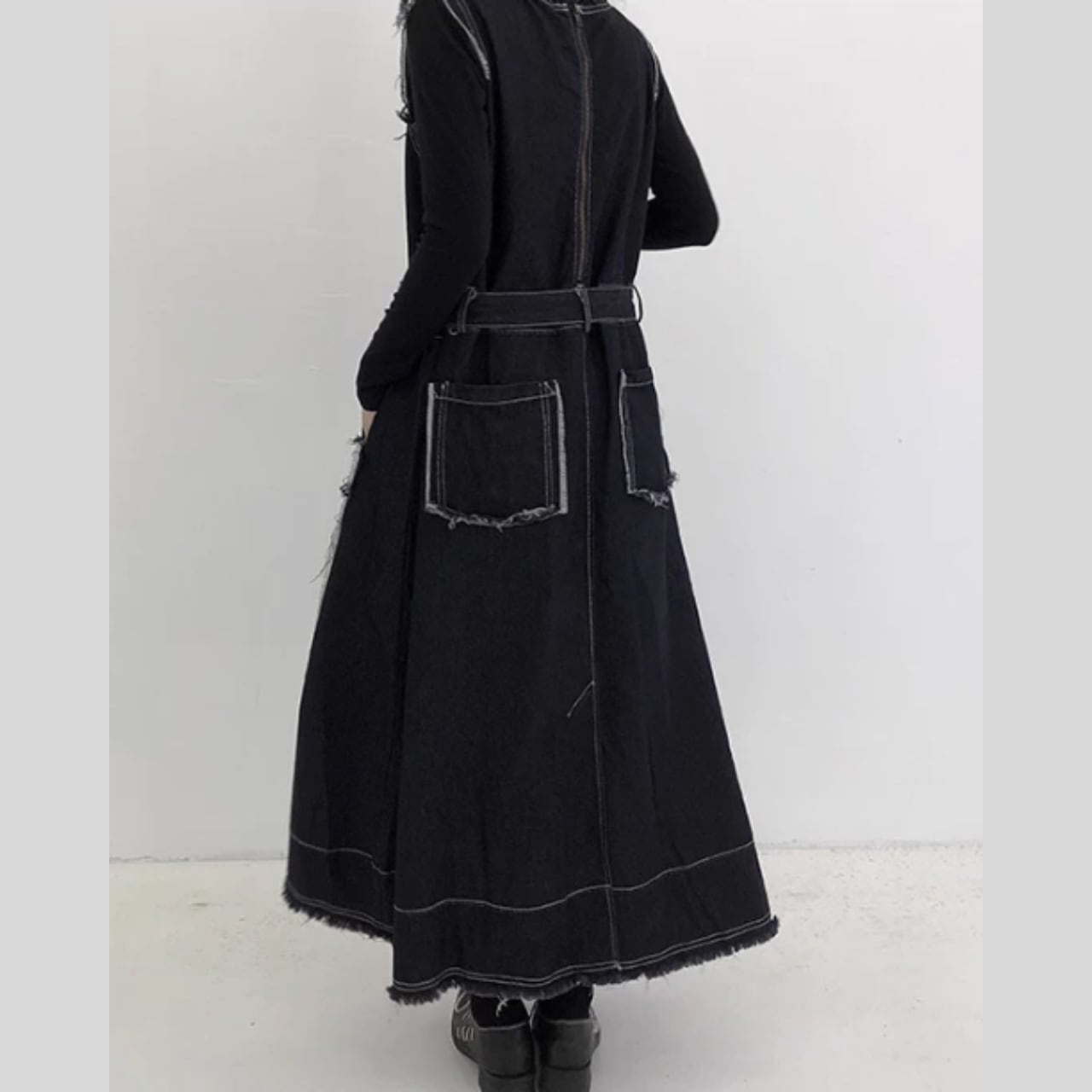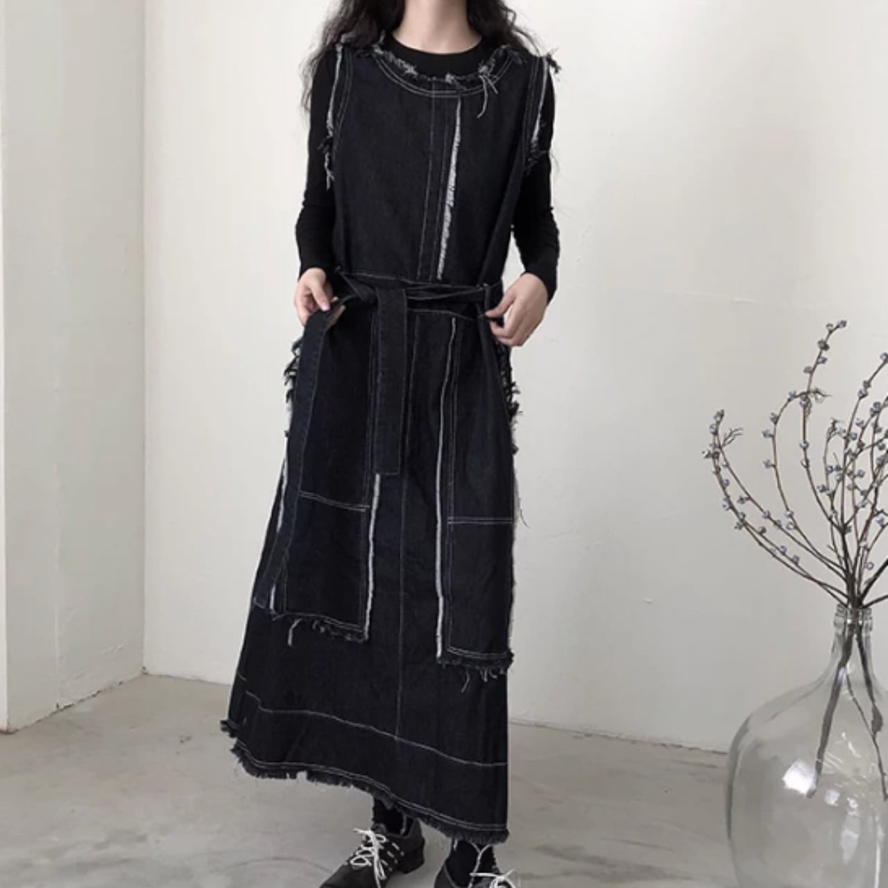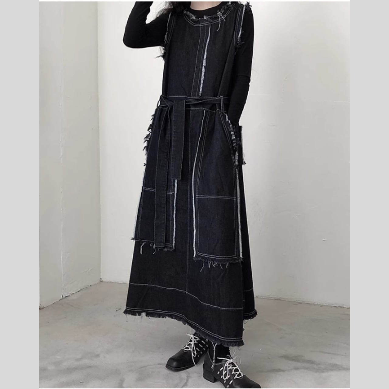 デニムノースリーブフレアシルエットロングワンピースR1200