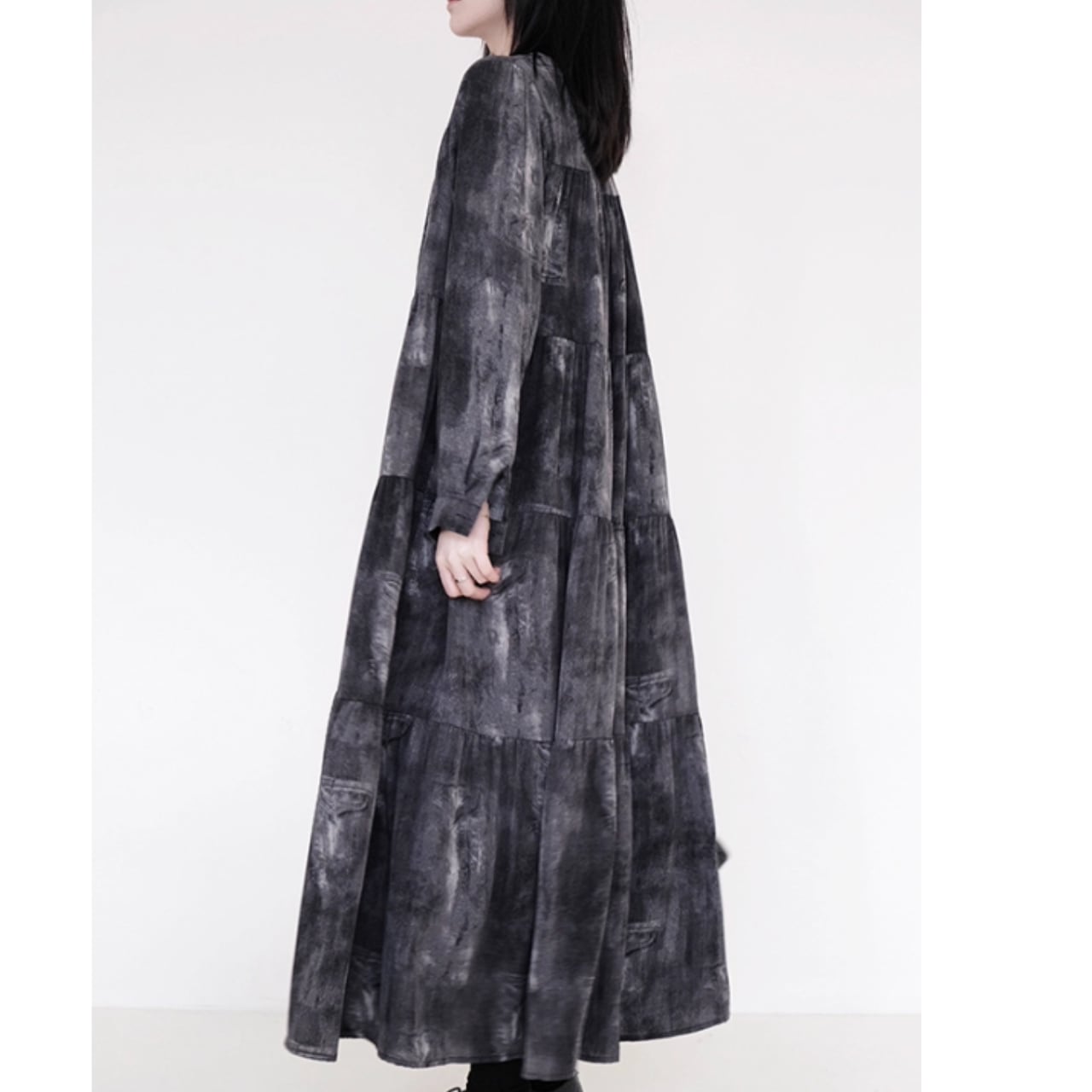 スタンドカラー長袖ロング丈ティアードワンピースR1232