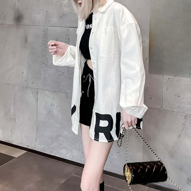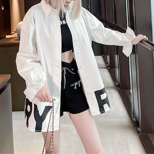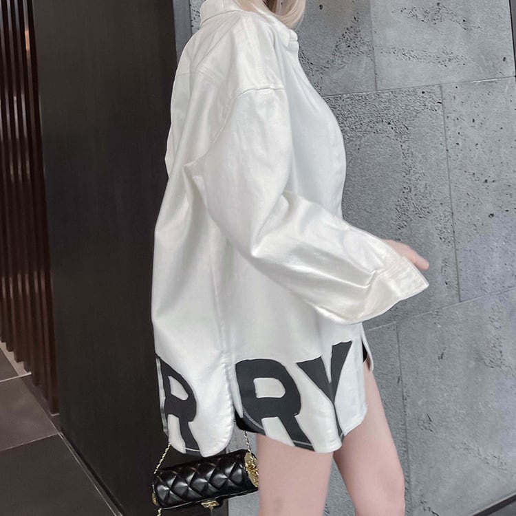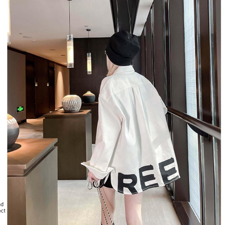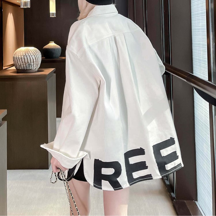 オーバーサイズ シャツ バックロゴプリント ボタンダウンシャツR1240