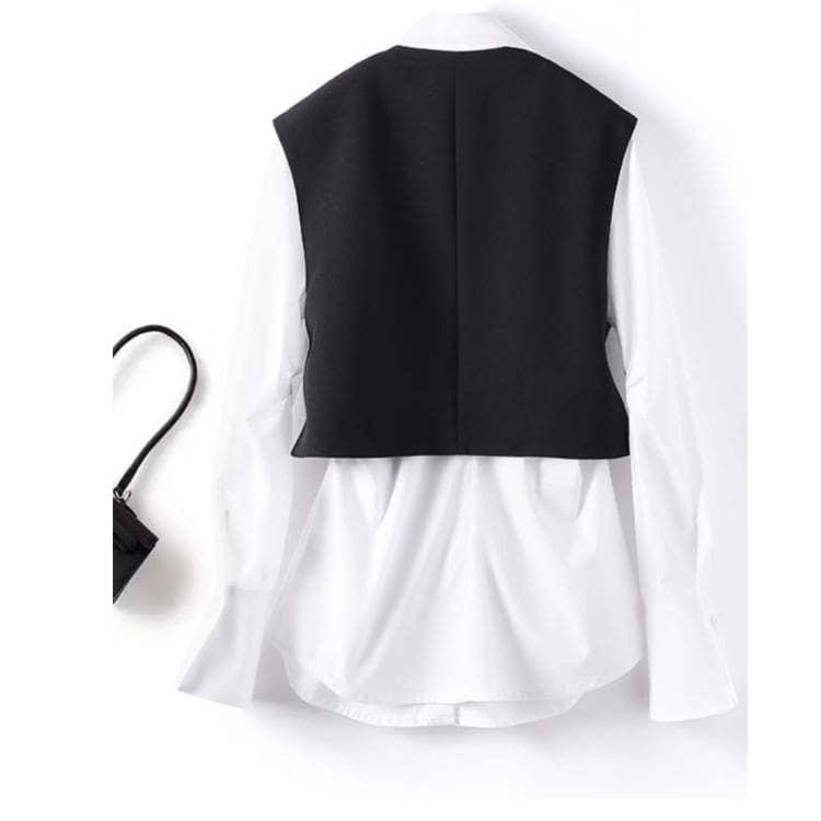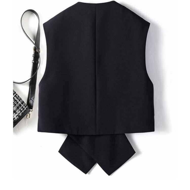 シンプルながらも洗練されたデザインが魅力のベスト。アシンメトリーなシルエットとVネックが、着こなしに抜け感をプラスします。体のラインを拾わないゆったりとしたデザインなので、リラックスして着こなせるのも嬉しいポイント。普段使いはもちろん、ちょっとしたお出かけにもおすすめです。