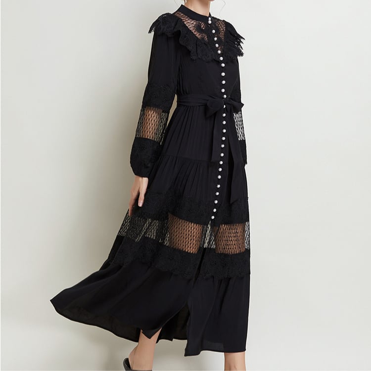 メッシュパネルとレースが織りなす、繊細で美しいデザインが魅力。