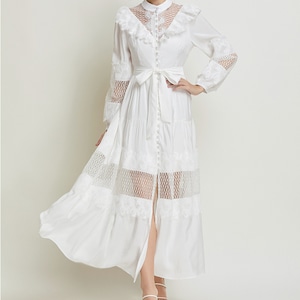スタンドカラーとボウタイが、クラシカルな雰囲気を醸し出し、シンプルながらも個性を際立たせます。