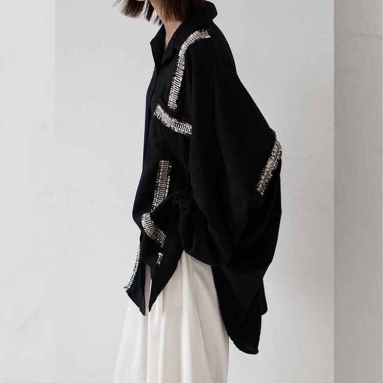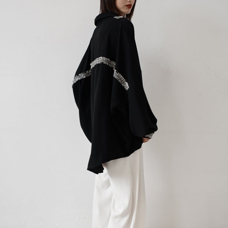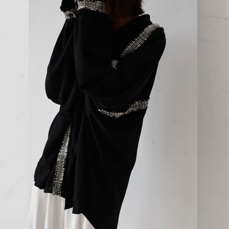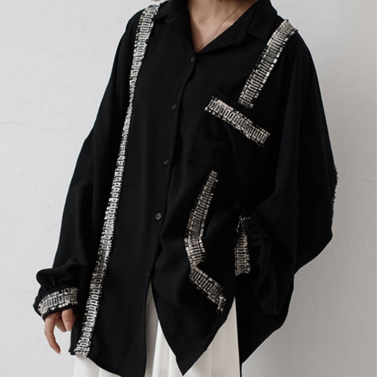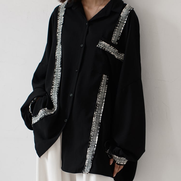 ツイードトリムデザイン オーバーサイズ ロングスリーブシャツ R01282