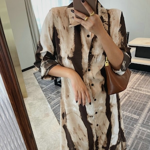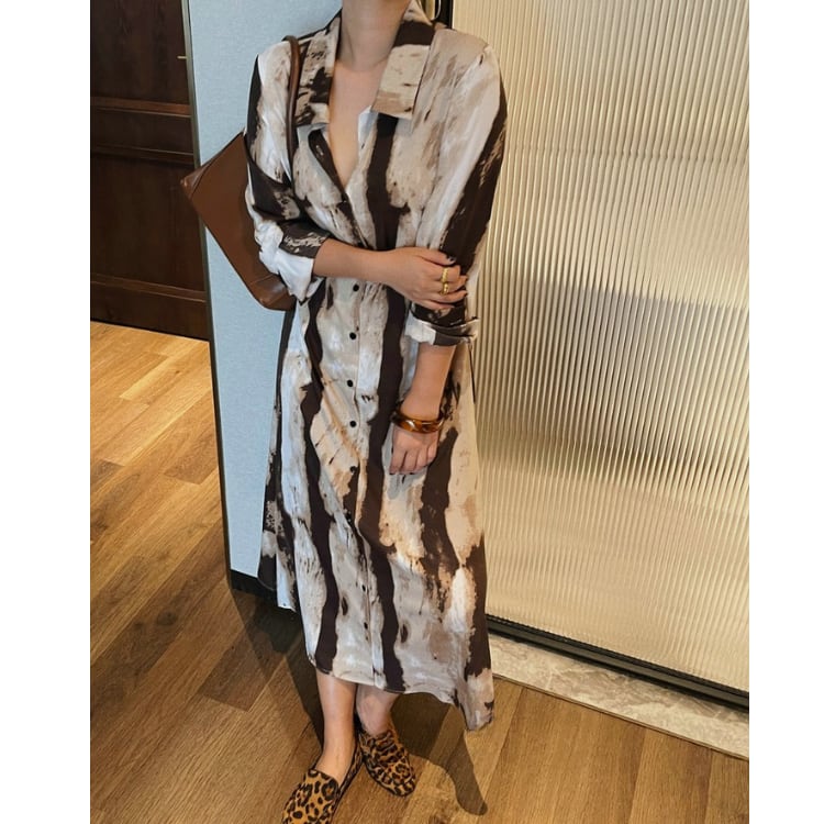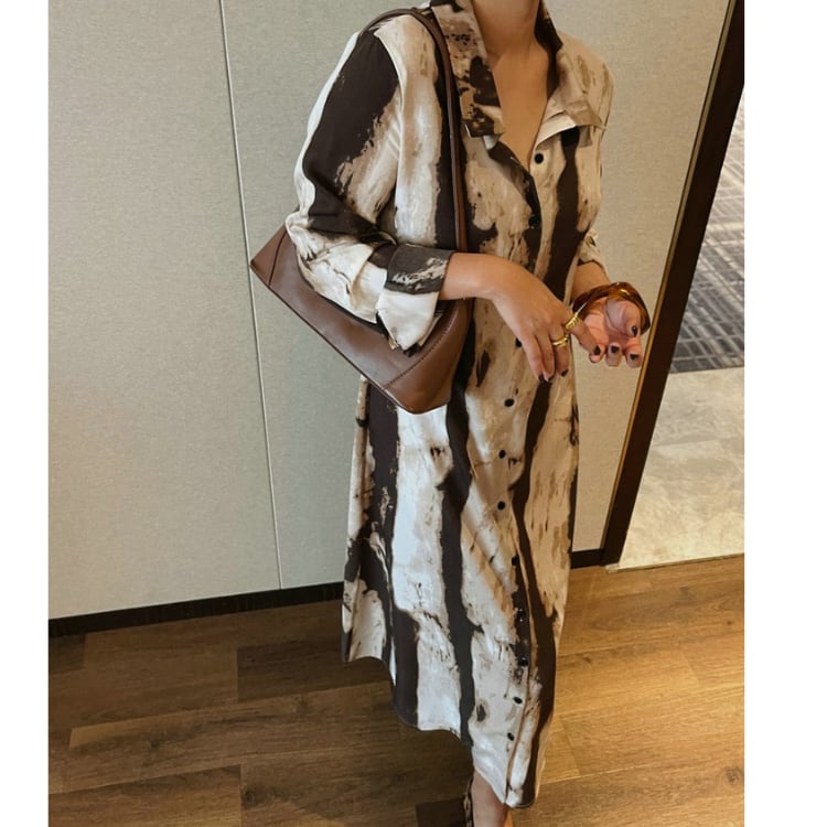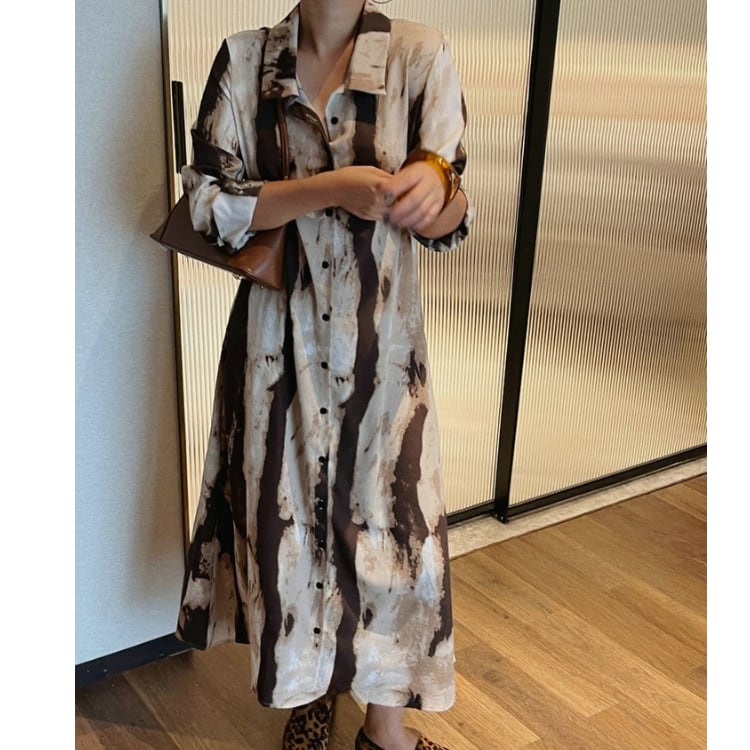 まるでアートのような「水墨画」を思わせる大胆なプリントが魅力のロングシャツワンピース。