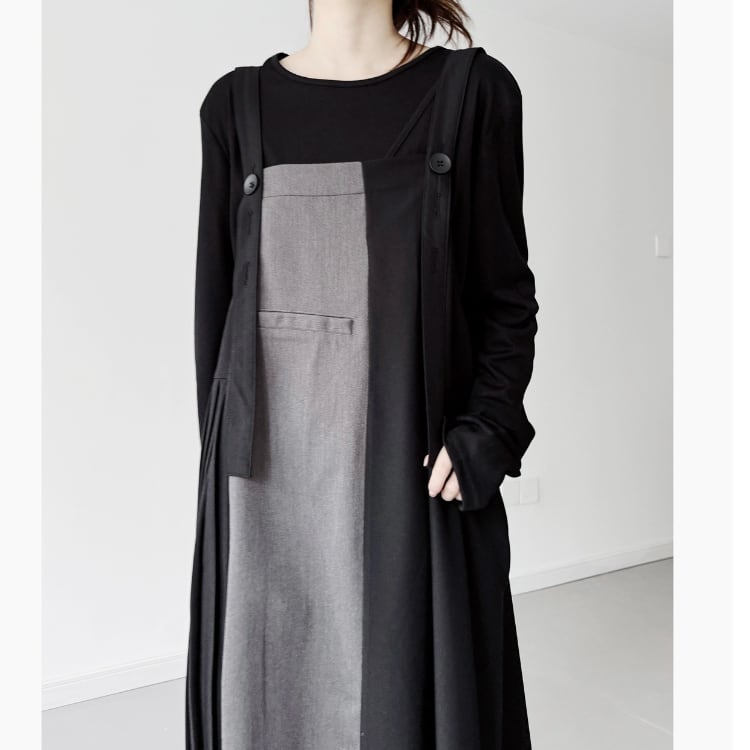 ボタンデザインとすとんと落ちるロング丈シルエットが、洗練された静かな存在感を放ちます。