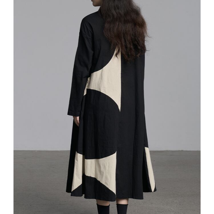 幾何学パターン切替ロングシャツワンピース|モノトーン×アートデザインR01347