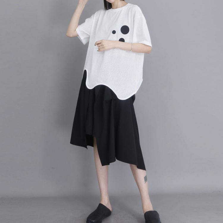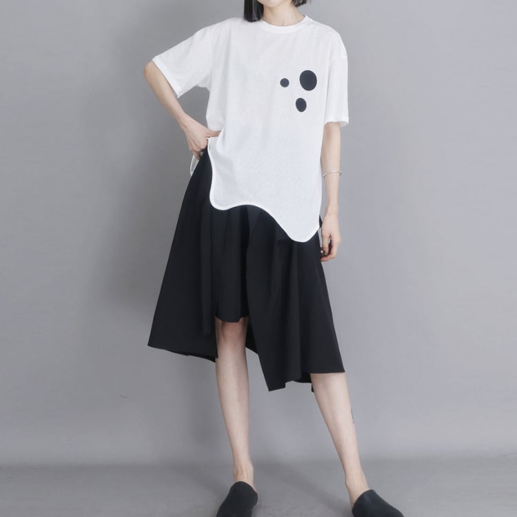 遊び心あるシルエットが魅力の、アシンメトリーデザインTシャツ。