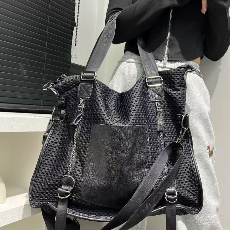 レザー×メッシュ切り替え ビッグトートバッグR01534