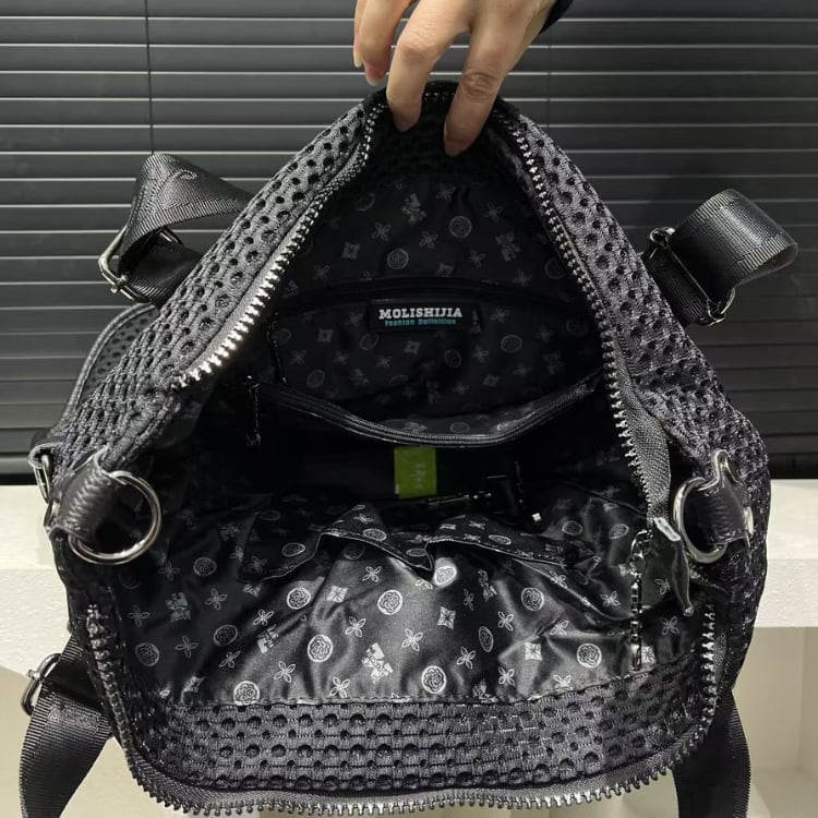 フロントには大きなジップポケット&立体ポケット付きで、実用性も抜群。荷物が多い日や、1泊旅行にも頼れる大容量デザインです。