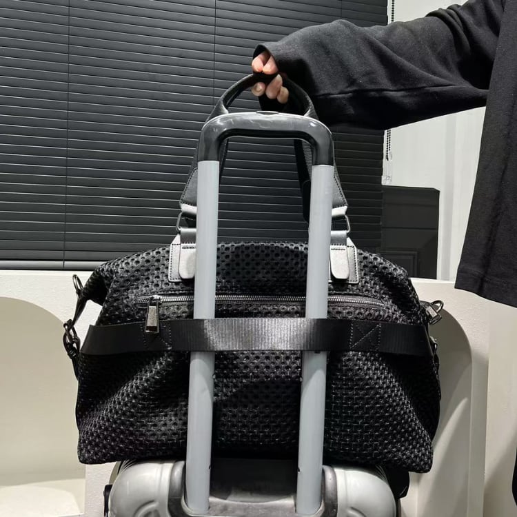 スーツケースの持ち手に固定できる背面ストラップや、取り外し可能なショルダーベルト付きで、旅行・出張・週末のお出かけまで幅広く対応。