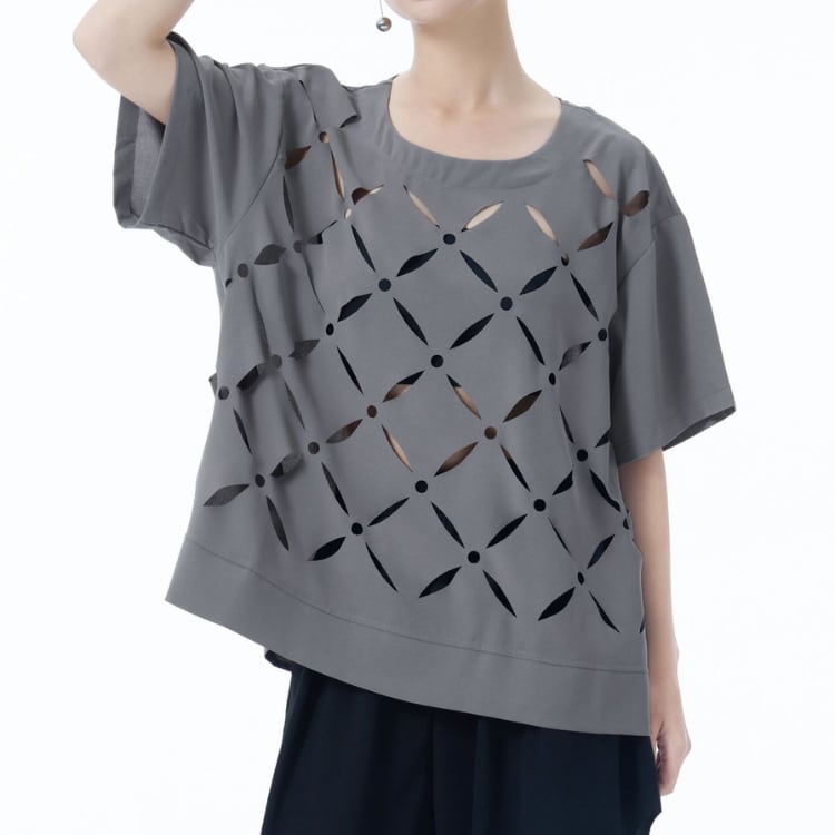 幾何カットワークデザイン ルーズシルエットTシャツ◆2col R01526