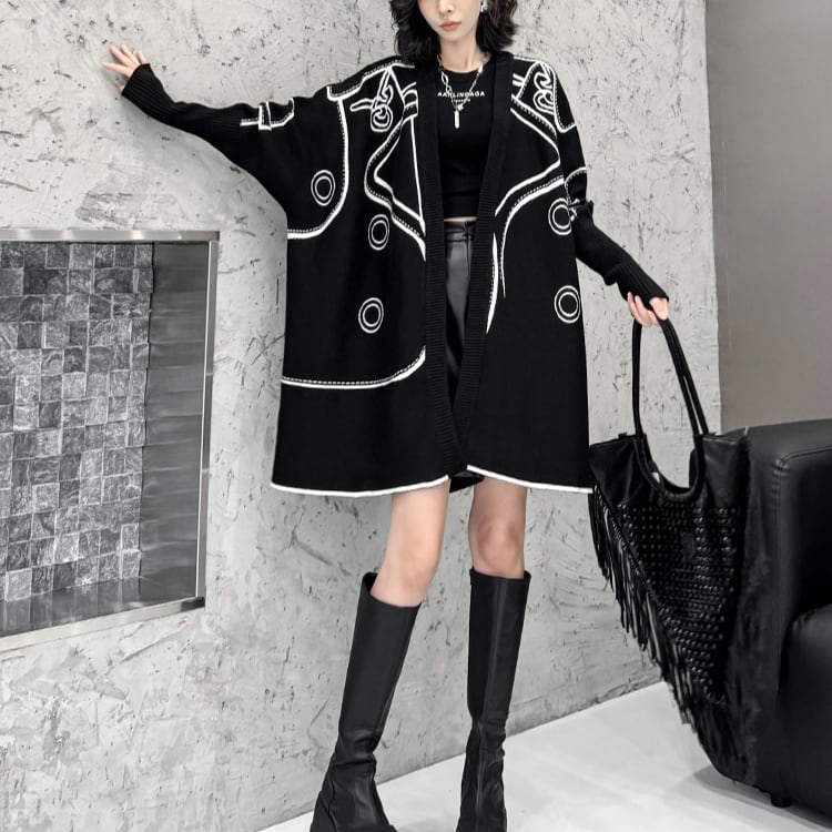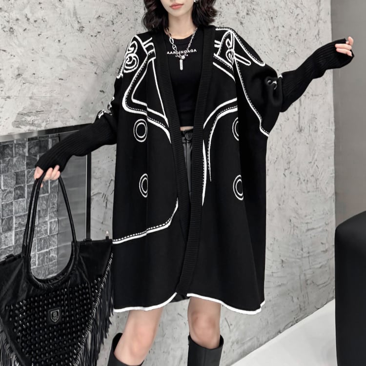 モード感漂う山本風デザインの小衆スタイル、両面で着用可能な個性派ニットカーディガン。