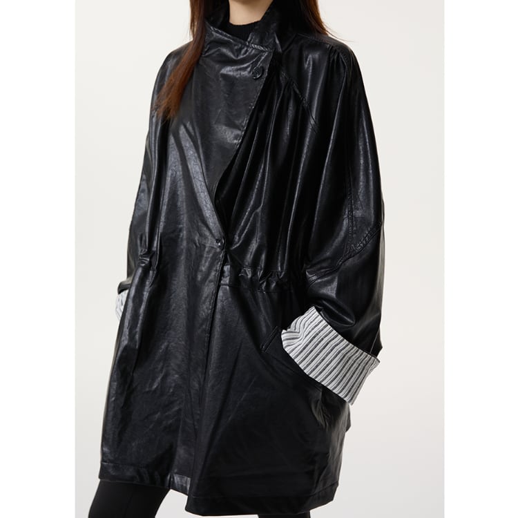 欧州風デザイン PUレザー ミドル丈バットスリーブジャケット R30021