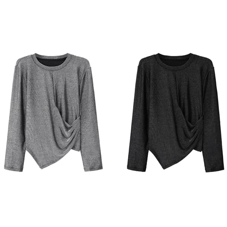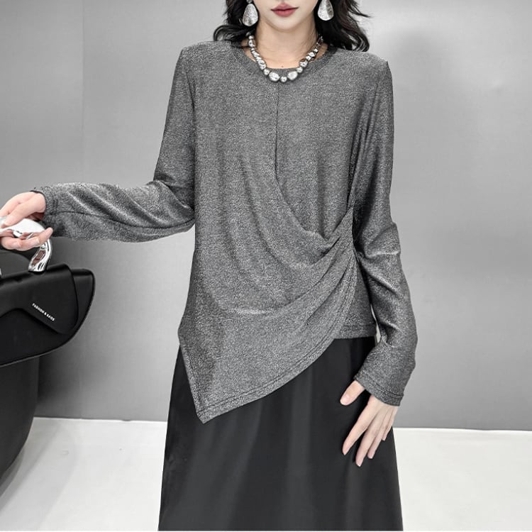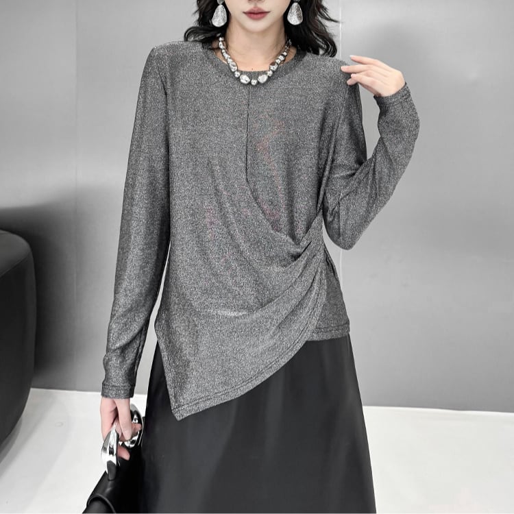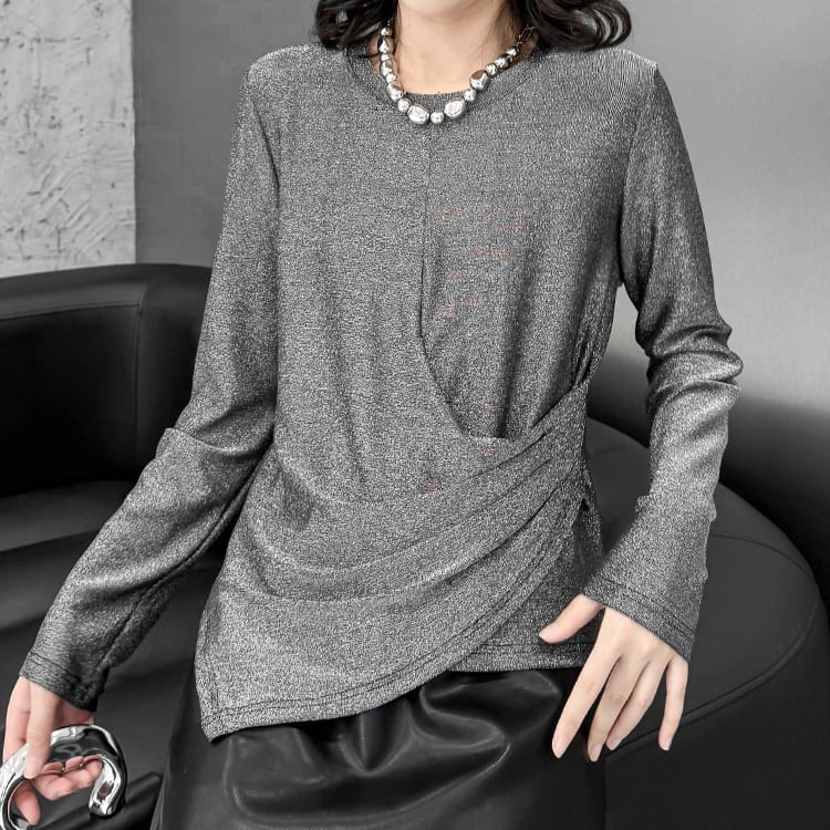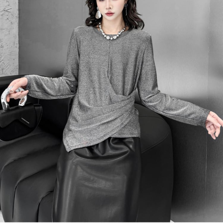 欧州風デザイン ラメシャイン長袖Tシャツ ◆2col R30002