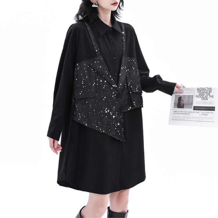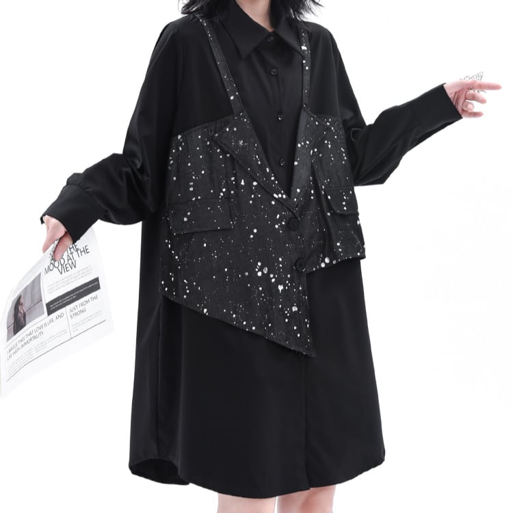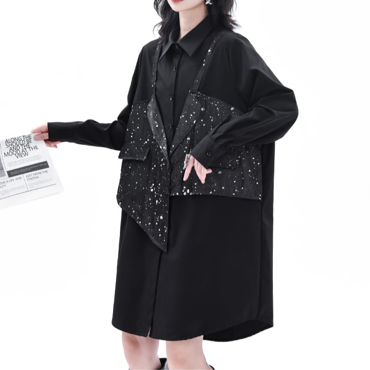 ストリートのエッセンスを取り入れた、フェイクレイヤードデザインのシャツワンピース。