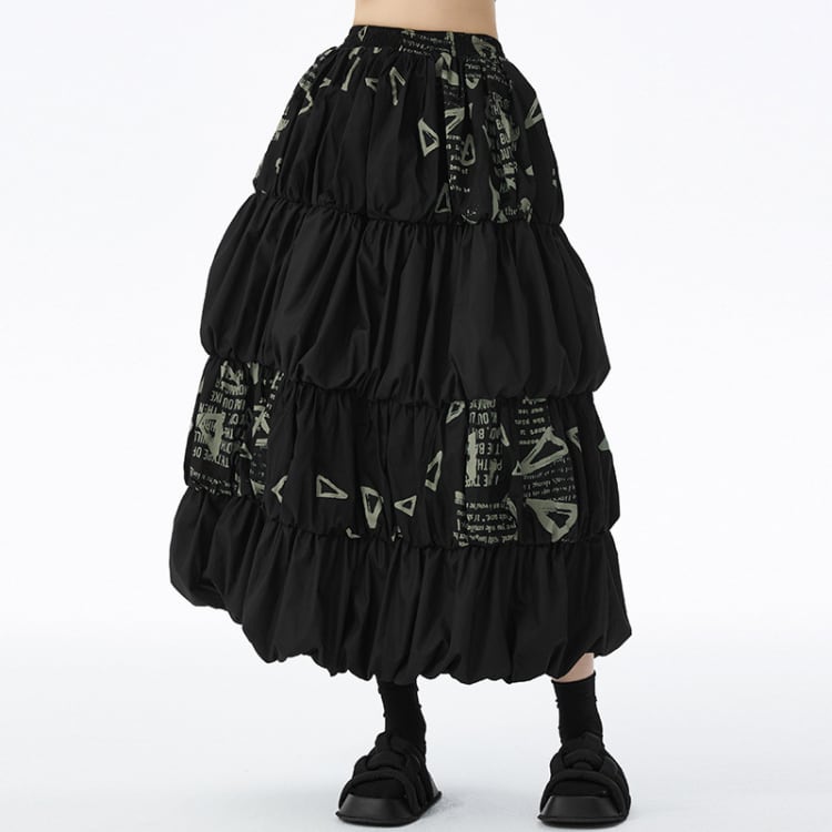 暗黒風の世界観を表現した、個性的なプリント入り高ウエストスカート。