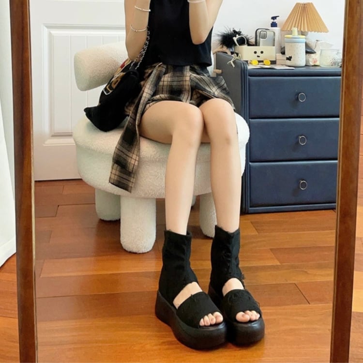 遺跡風ショートブーツ風ローマ厚底サンダル ◆2col R30033