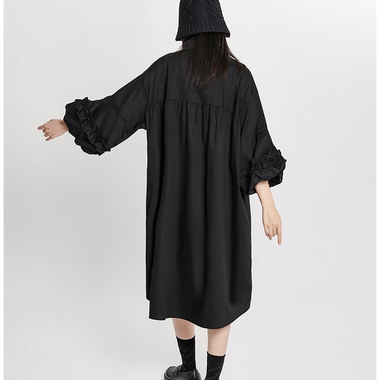 ヨーロッパ風ビジュー貼り布シャツワンピース 七分袖 バルーンスリーブ R30014