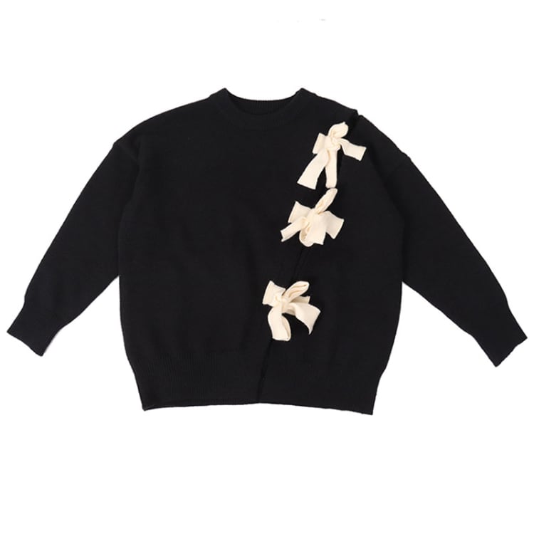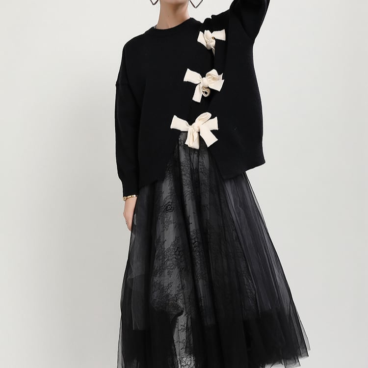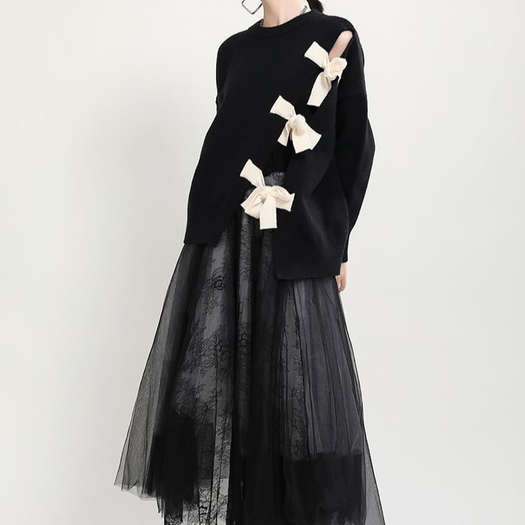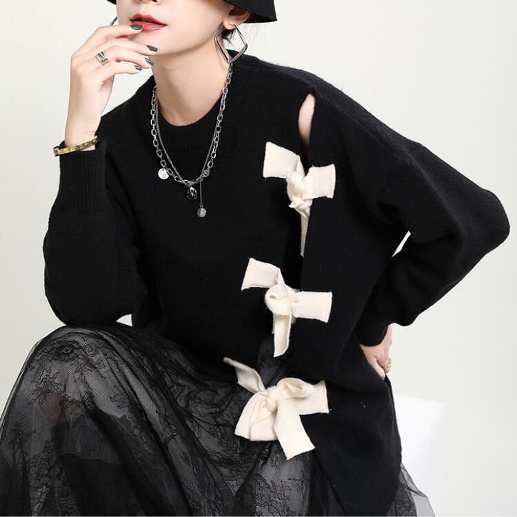 異素材リボンデザインカットアウトニットプルオーバR30029