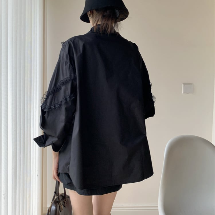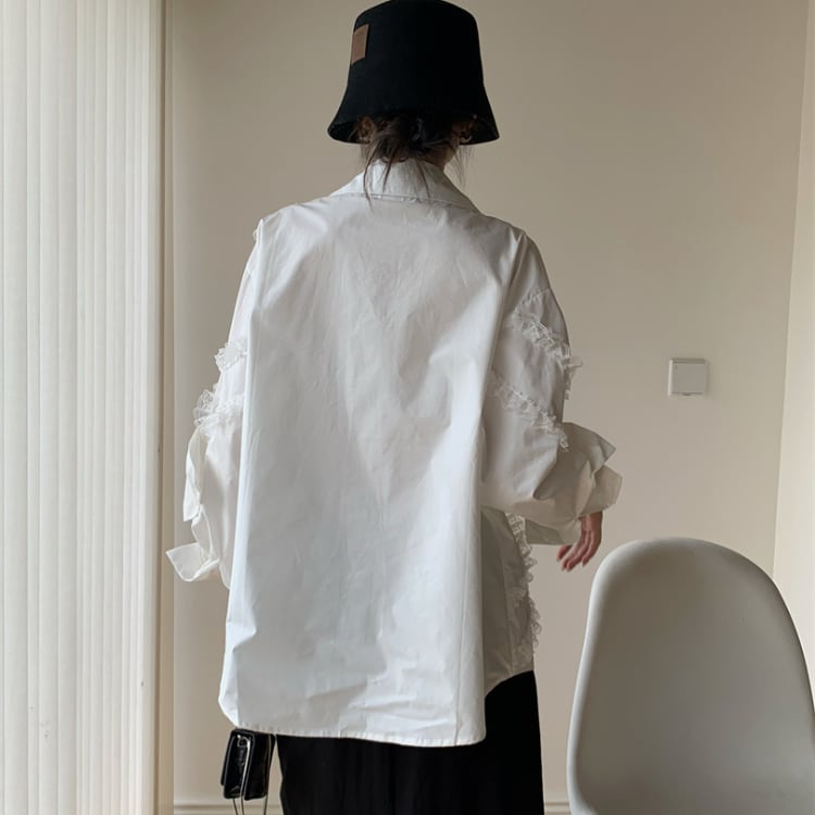 立体リボン×レースデザインモードシャツ ブラウス◆2col R30053