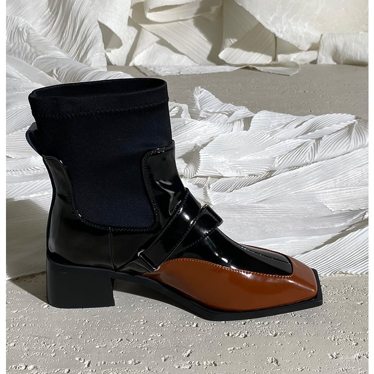 バイカラー切替スクエアトゥチェルシーショートブーツ ◆2col R30069