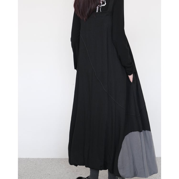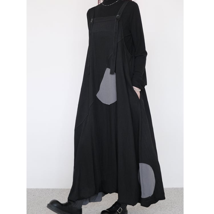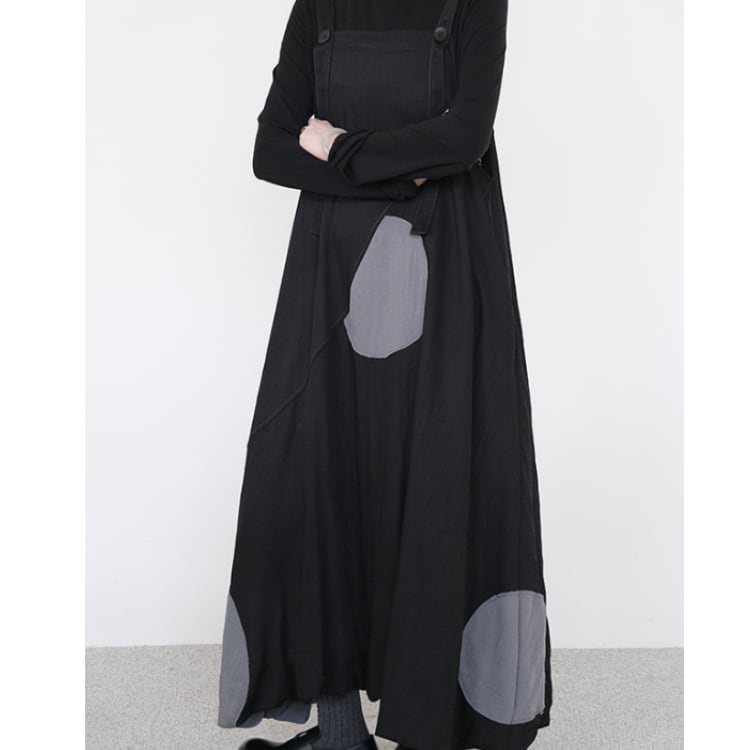ドット切り替えデザイン 花苞シルエット サロペットロングワンピース R30072