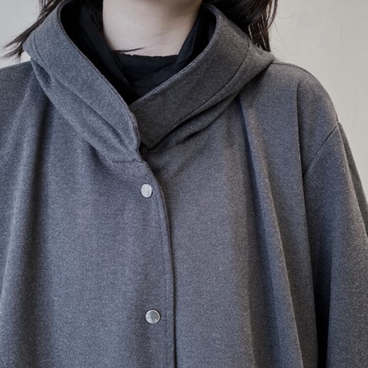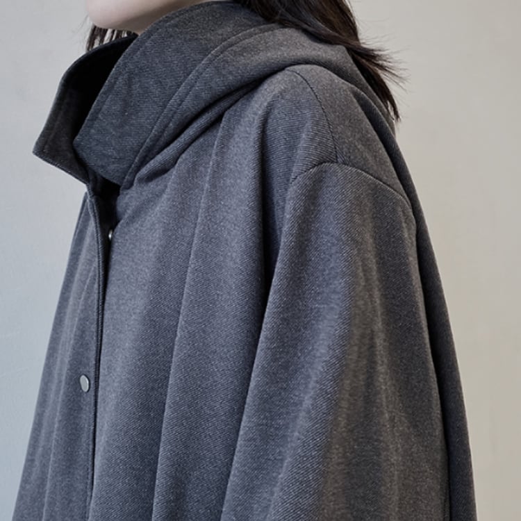 デザイン感溢れるオーバーサイズ厚手フード付きコート R30074