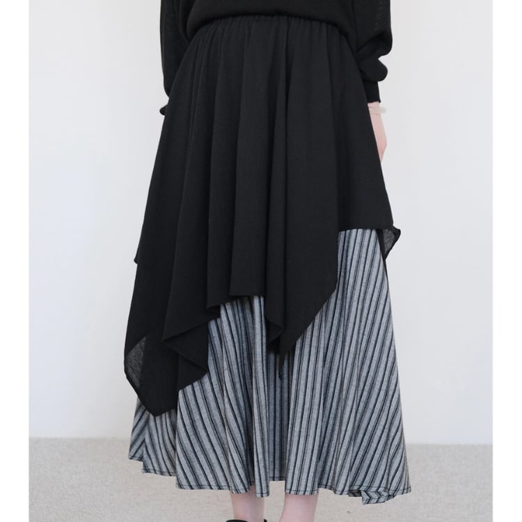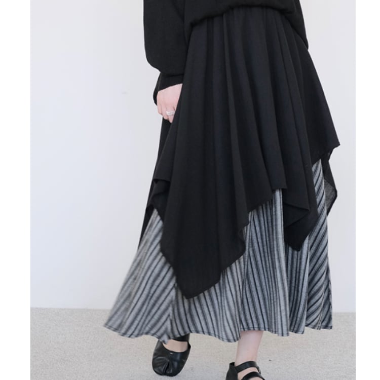 アシンメトリーデザイン切替ロングスカート R30075