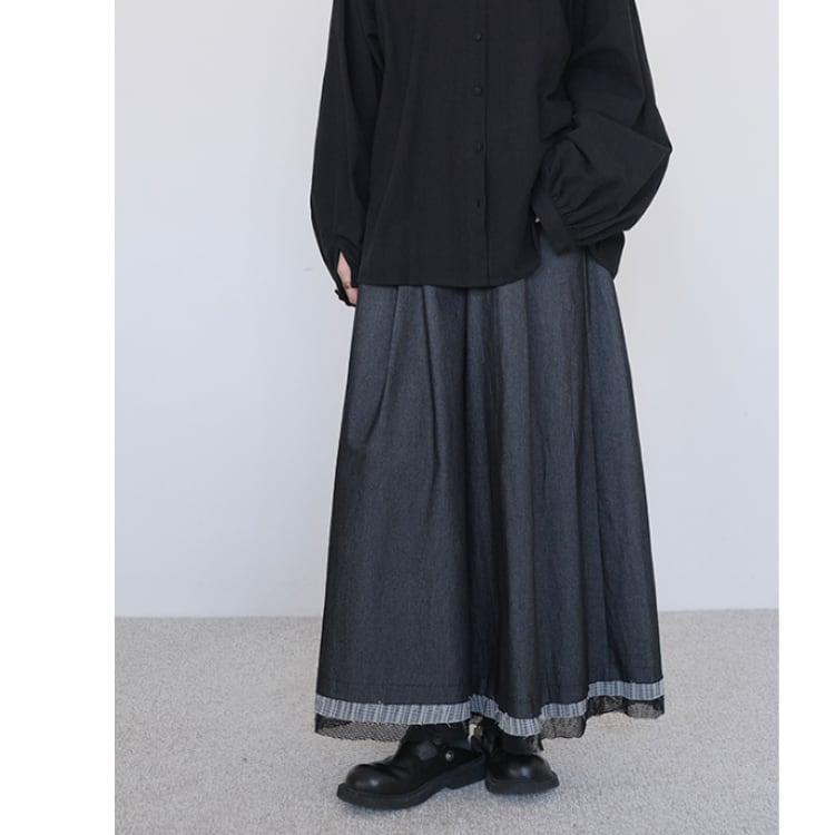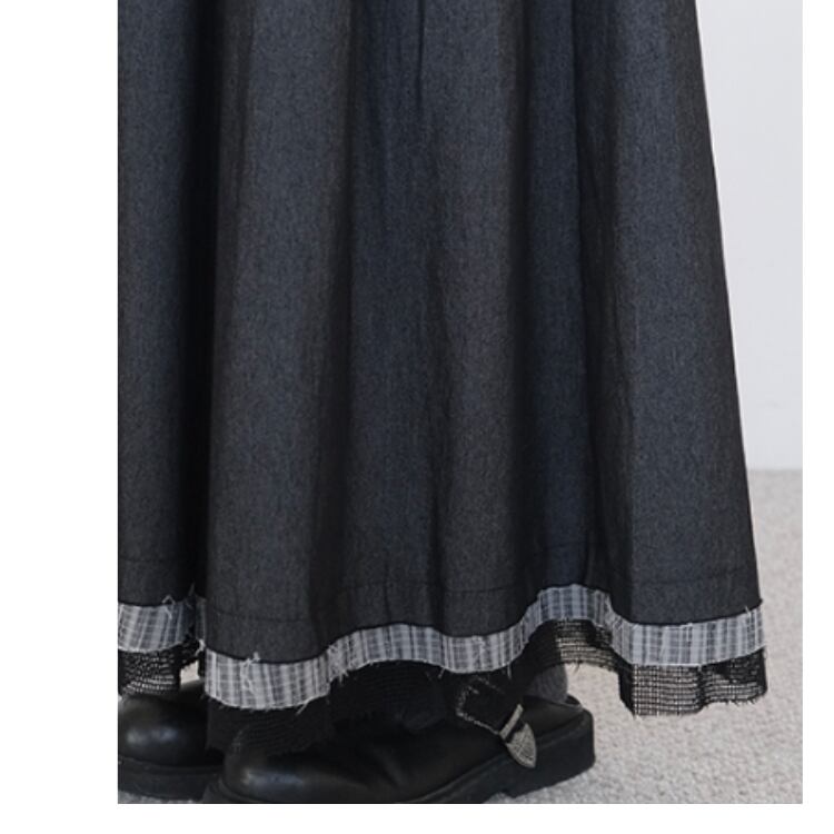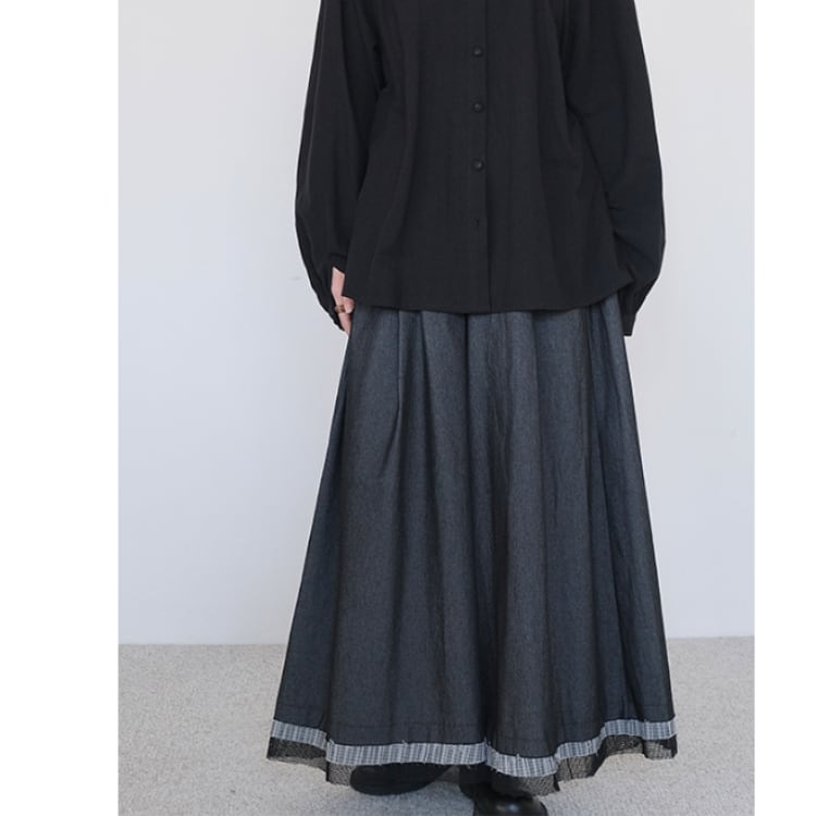 光沢のあるサテン生地と異素材を切り替えたが印象的なロングスカート。 デザインウエストはゴム仕様で快適な穿き心地を叶え、歩く度に広がるフレアシルエットが女性らしい雰囲気を演出します。 モノトーンカラーでシンプルながらも存在感があり、カジュアルからきれいめまで幅広いスタイルにマッチする1枚です。