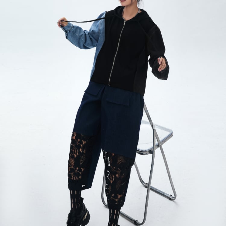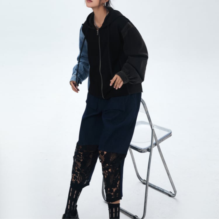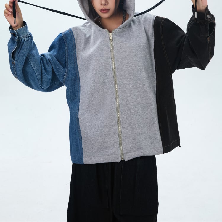 デニムとスウェットを大胆に切り替えたデザインが目を惹くフーディジャケット。 ゆったりとしたシルエットで体型をカバーしつつ、ストリート感のある雰囲気を演出。 ファスナー開閉の軽快な着心地で、秋口から春先までロングシーズン活躍。 カジュアルモードにも合わせやすい1枚です。