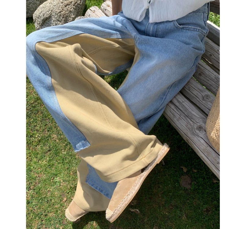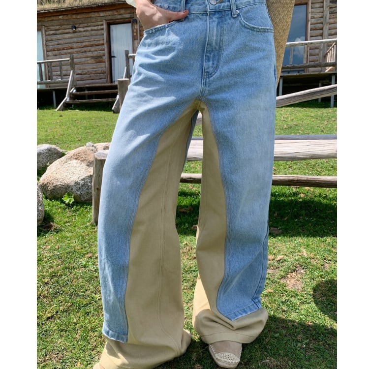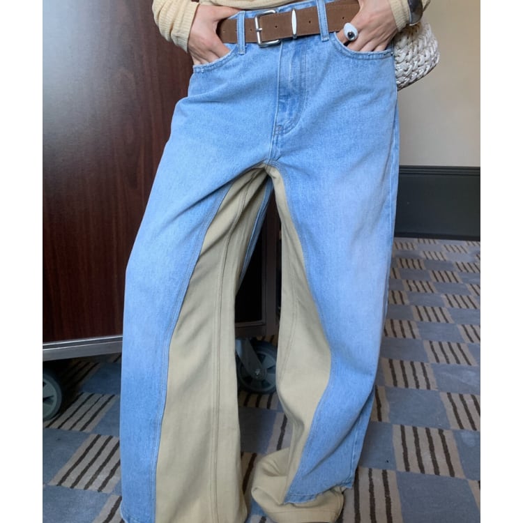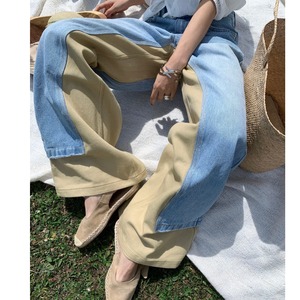デザイン切替バイカラーデニムワイドパンツ R30103