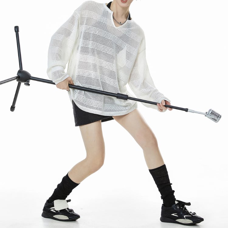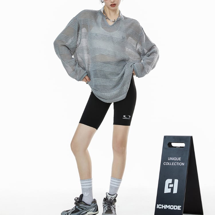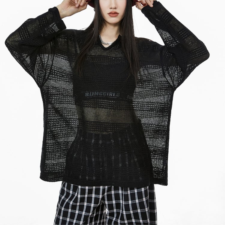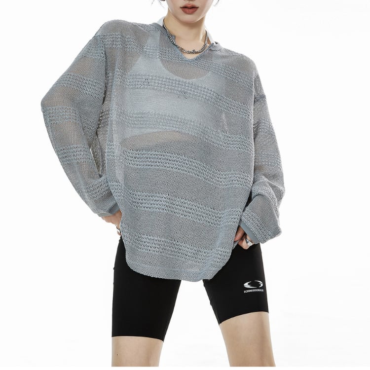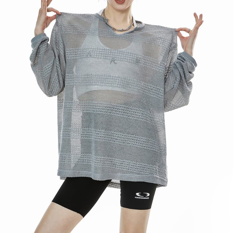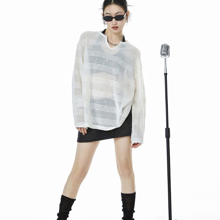 アメリカンカジュアル風メッシュ透かし編み長袖Tシャツ ◆3col R30125