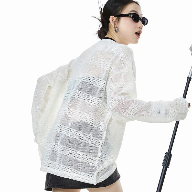 2025年夏新作で涼しく快適に着られる物理防疫仕様のゆったりシルエットが親しみ感を演出し軽やかな透け感がトレンドの慵懒スタイルにぴったりで水着の上に着たりタンクトップやキャミとレイヤードしてタウンユースにもリゾートにも活躍する個性派トップスです
