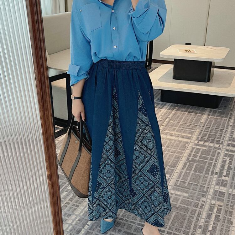 パッチワークデザインが目を引くミモレ丈スカート。Aラインシルエットが女性らしさを引き立てます。普段使いはもちろん、少しフォーマルなシーンにもおすすめです。シンプルなトップスと合わせるだけで、洗練されたコーディネートが完成します。