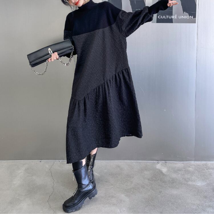 パフスリーブ ミモレ丈 長袖 ワンピース R30179