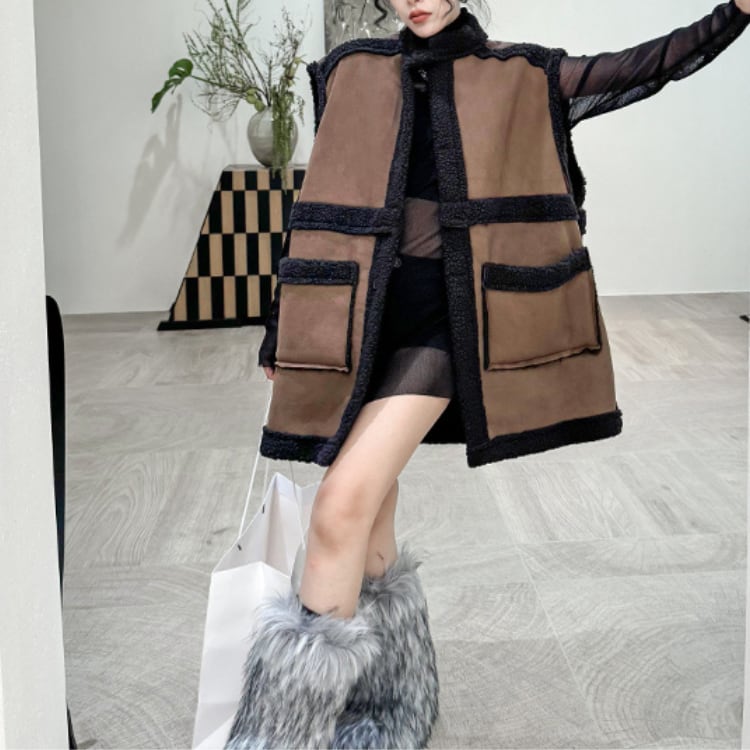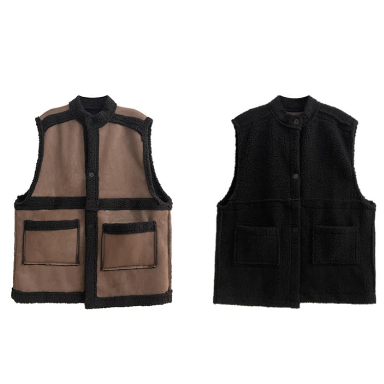 リバーシブル ボア×フェイクレザー ロングベスト R30220