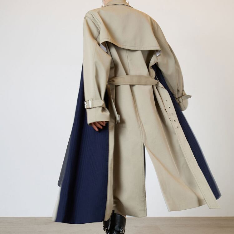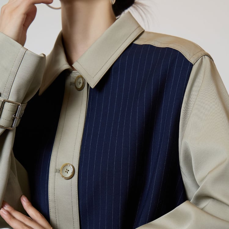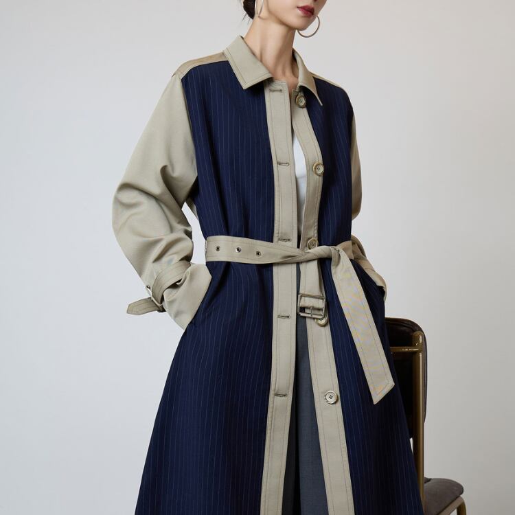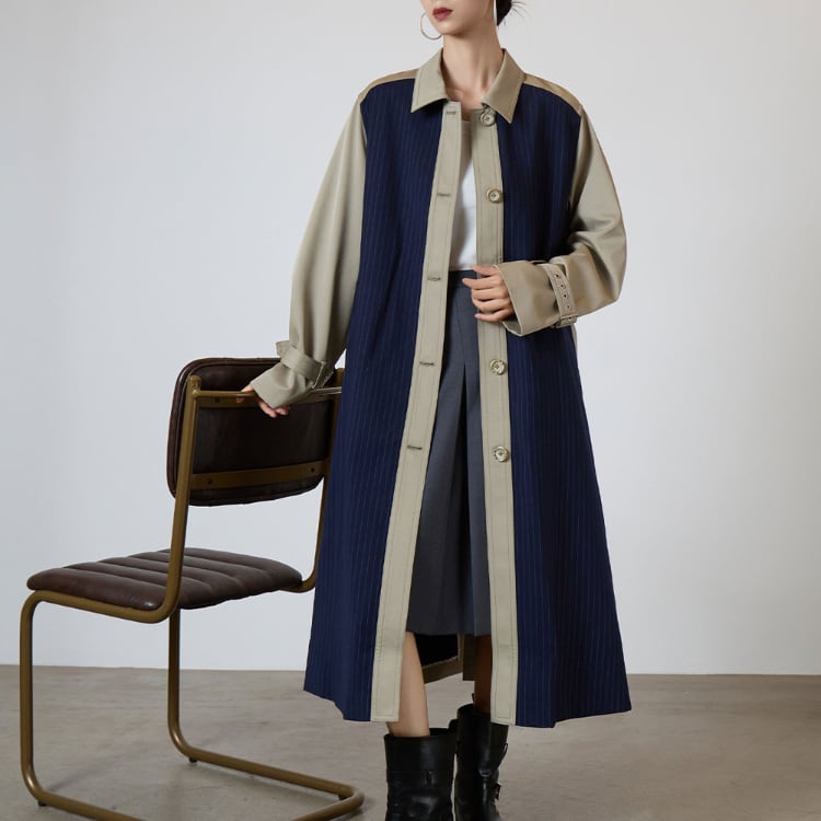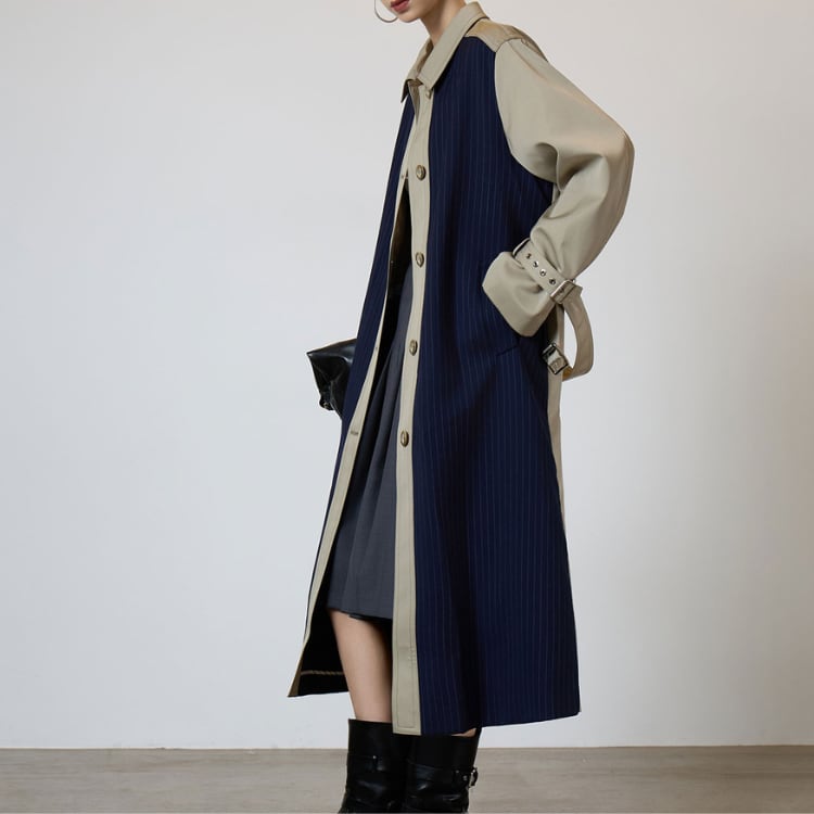 ストライプ柄 ロング丈 シャツカラー コートR30123
