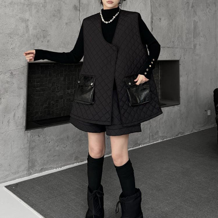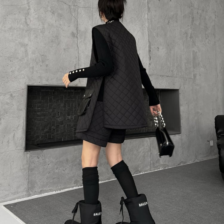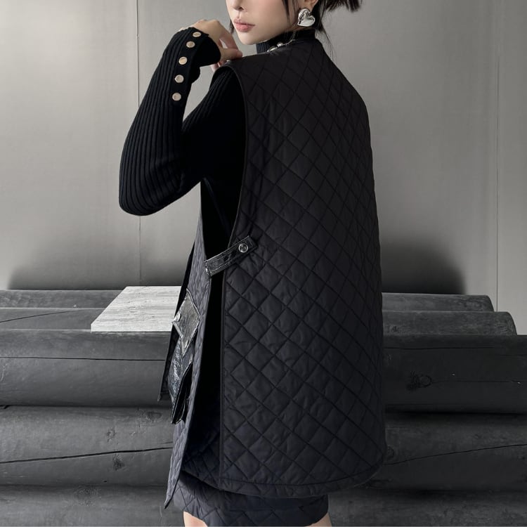キルティング パッチポケット ノーカラー ベスト R30229