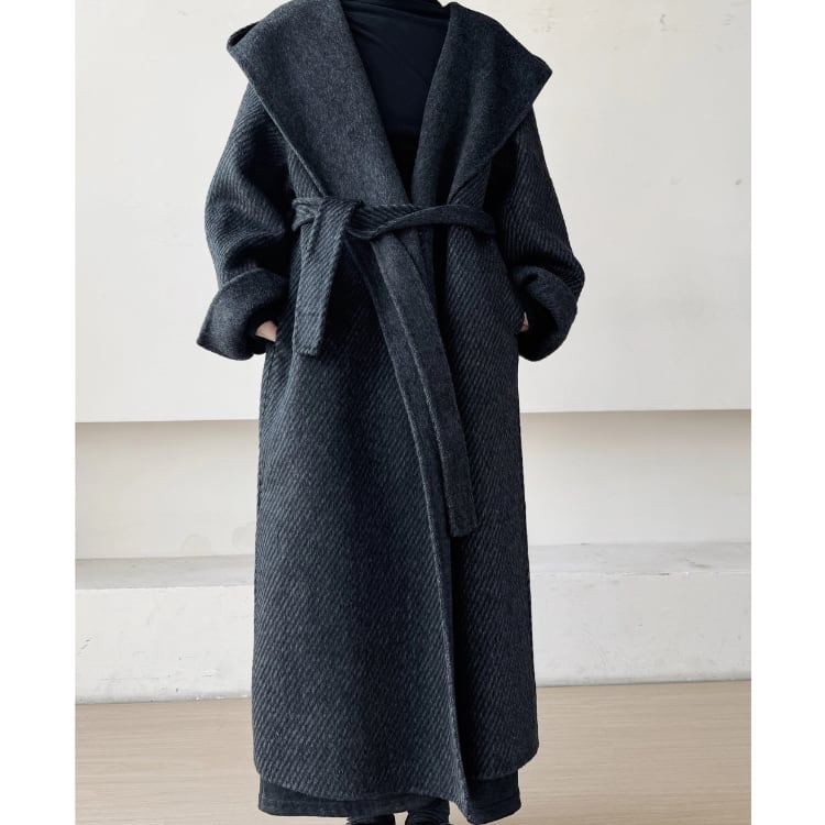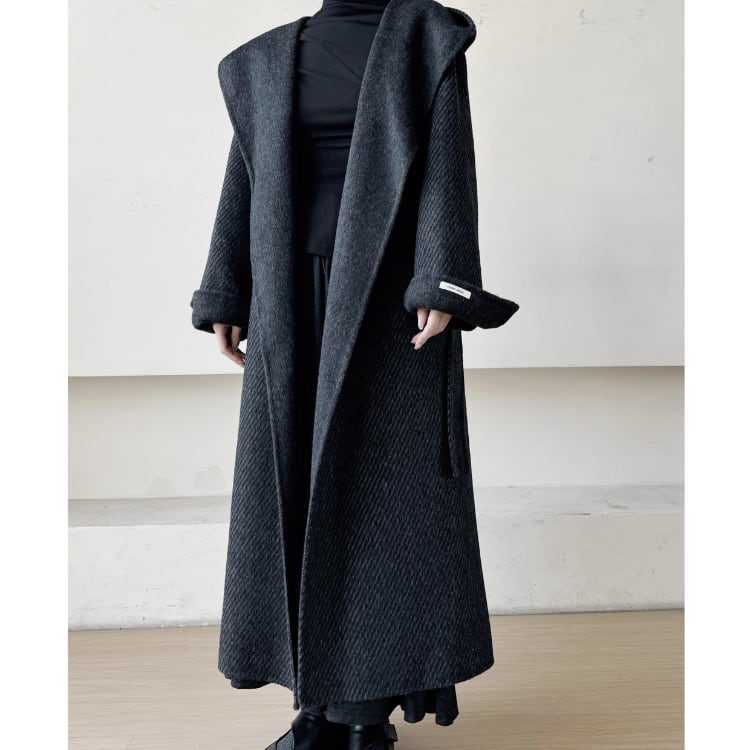 フード付きロング丈コートは、普段使いから特別な日まで、様々なシーンで活躍します。付属のベルトでウエストをマークすれば、スタイルアップ効果も期待できます。フードが首元を暖かく包み込み、ロング丈が全身を優しくカバー。洗練されたデザインで、あなたのファッションセンスを際立たせます。